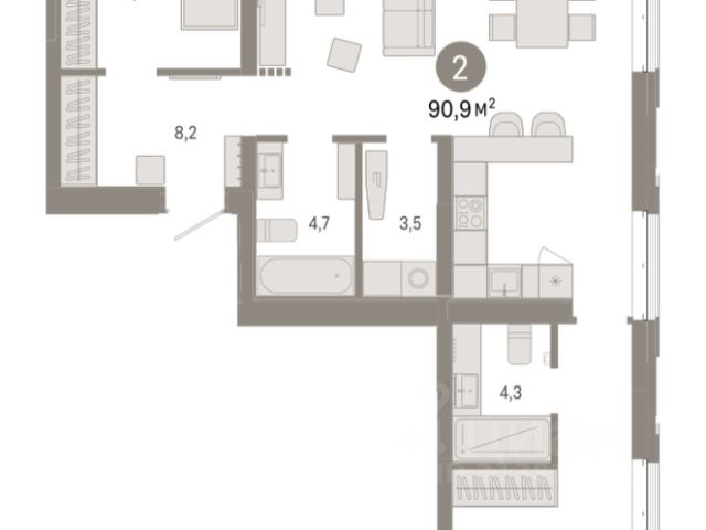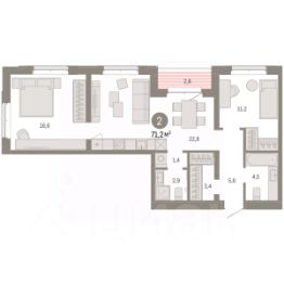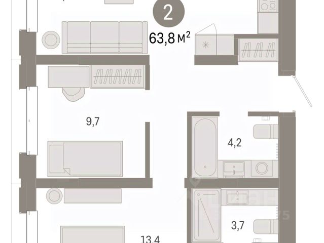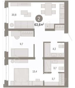 2-комн. квартира с предчистовой отделкой в Кварталы "На Минской" на 6 этаже. Общая площадь: 63.05 кв.м., жилая: 25.2 кв.м., площадь просторной кухни-гостиной: 17.7 кв.м. Комнаты изолированные, все окна выходят на одну сторону. В квартире одна лоджия, два совмещенных санузла. Высота потолков 2.7 м. Дом монолитный, многоподъездный, переменной этажности, от 7 до 11 этажей. Квартира находится в 1-й секции высотой 7 этажей в корпусе 2. На этаже 6 квартир. В подъезде 1 пассажирский и 1 грузовой лифт. Окончание строительства - 1 квартал 2027 года. Оформление сделки по договору долевого участия. Продаётся с паркингом. Квартира с кухней-гостиной и двумя спальнями в кварталах "На Минской". Особенности планировки: вид во двор, гардеробная, мастер-спальня, потолки 3 м и выше, предчистовая отделка, разнесённые спальни, тёплая лоджия. квартиры в нашей базе: МНС02-Ж1.6.3. В сердце города Кварталы "На Минской" находятся в самом центре. За десять минут можно дойти до площади 400-летия Тюмени и Большого Драматического театра, Тюменского индустриального и медицинского университетов, спортивного комплекса "Строймаш", ТРЦ "Гудвин" и "Премьер", Тюменского технопарка. Поблизости много детских садов, школ и поликлиник. Пространство разного опыта Создавая кварталы "На Минской" мы вдохновлялись Хакскими дворами в Берлине и улицей Давида Агмашенебели в Тбилиси. И первые и вторая — яркие разнообразные пространства, сформированные прогрессивными архитекторами и притягивающие городских интеллектуалов. Престижная недвижимость здесь соседствует с барами, ресторанами, креативными кластерами и бюро, дизайнерскими лавками. Полезные улицы Кварталы "На Минской" свяжет сеть променадов, автомобильных проездов и велодорожек. Уличный фронт проекта мы сформируем с помощью аллейной посадки деревьев. Они создадут тень для ресторанов и кафе на первых этажах, визуально отделят проезжую и пешеходную части, снизят объём пыли и уровень шума. Мы реализуем проект в районе с развитой базовой инфраструктурой. И поэтому тщательно подошли к программированию коммерции, посчитав, что её основная задача — "закрывать" более высокие потребности жителей. Здесь может появиться пекарня с вкусными круассанами, турагентство на случай, если захочется перезимовать в Сочи, массажный кабинет, ресторан, когда надоело есть дома и многое другое. #ZmcoVE Продается 2-комнатная квартира в микрорайоне Драмтеатр (Ленинский) в городе Тюмень.
