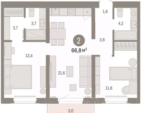 2-комн. квартира с предчистовой отделкой в Кварталы "На Минской" на 6 этаже. Общая площадь: 63.05 кв.м., жилая: 25.2 кв.м., площадь просторной кухни-гостиной: 17.7 кв.м. Комнаты изолированные, все окна выходят на одну сторону. В квартире одна лоджия, два совмещенных санузла. Высота потолков 2.7 м. Дом монолитный, многоподъездный, переменной этажности, от 7 до 11 этажей. Квартира находится в 1-й секции высотой 7 этажей в корпусе 2. На этаже 6 квартир. В подъезде 1 пассажирский и 1 грузовой лифт. Окончание строительства - 1 квартал 2027 года. Оформление сделки по договору долевого участия. Продаётся с паркингом. Квартира с кухней-гостиной и двумя спальнями в кварталах "На Минской". Особенности планировки: вид во двор, гардеробная, мастер-спальня, потолки 3 м и выше, предчистовая отделка, разнесённые спальни, тёплая лоджия. квартиры в нашей базе: МНС02-Ж1.6.3. В сердце города Кварталы "На Минской" находятся в самом центре. За десять минут можно дойти до площади 400-летия Тюмени и Большого Драматического театра, Тюменского индустриального и медицинского университетов, спортивного комплекса "Строймаш", ТРЦ "Гудвин" и "Премьер", Тюменского технопарка. Поблизости много детских садов, школ и поликлиник. Пространство разного опыта Создавая кварталы "На Минской" мы вдохновлялись Хакскими дворами в Берлине и улицей Давида Агмашенебели в Тбилиси. И первые и вторая — яркие разнообразные пространства, сформированные прогрессивными архитекторами и притягивающие городских интеллектуалов. Престижная недвижимость здесь соседствует с барами, ресторанами, креативными кластерами и бюро, дизайнерскими лавками. Полезные улицы Кварталы "На Минской" свяжет сеть променадов, автомобильных проездов и велодорожек. Уличный фронт проекта мы сформируем с помощью аллейной посадки деревьев. Они создадут тень для ресторанов и кафе на первых этажах, визуально отделят проезжую и пешеходную части, снизят объём пыли и уровень шума. Мы реализуем проект в районе с развитой базовой инфраструктурой. И поэтому тщательно подошли к программированию коммерции, посчитав, что её основная задача — "закрывать" более высокие потребности жителей. Здесь может появиться пекарня с вкусными круассанами, турагентство на случай, если захочется перезимовать в Сочи, массажный кабинет, ресторан, когда надоело есть дома и многое другое. #ZmcoVE Продается 2-комнатная квартира в микрорайоне Драмтеатр (Ленинский) в городе Тюмень.