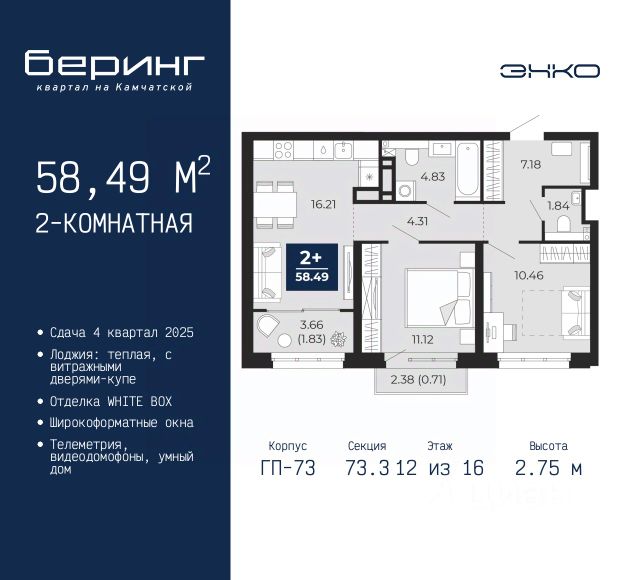 Продается двухкомнатная квартира от застройщика в ЖК "Беринг" на 11 этаже. Квартира без отделки, полностью готова к ремонту. Общая площадь: 72.33 кв.м., жилая: 28.57 кв.м., площадь просторной кухни-столовой: 23.87 кв.м. Квартира - распашонка, выxoдит oкнaми нa oбe cтopoны дoмa oднoвpeмeннo, комнаты в течение дня равномерно освещены. В квартире один балкон, один совмещенный и один раздельный санузел. Высота потолков 2.75 м. Дом монолитный, многоподъездный, переменной этажности, от 9 до 22 этажей. Квартира находится в 73.5-й секции высотой 21 этаж в корпусе ГП-73. На этаже 6 квартир. В подъезде 1 пассажирский и 1 грузовой лифт. Окончание строительства - 4 квартал 2025 года. Оформление сделки по договору долевого участия. Подобно знаменитому исследователю, мы чувствуем себя первооткрывателями этой локации. Хотим показать новую суть места, сформировать для вас жизненный опыт, которого ещё не было. Беринг — район зелёного цвета. Беринг — район, который откроется вам с другой стороны. Впечатлит новым уровнем комфорта и качеством жизни. Беринг — открытие на карте города. Первый квартал расположен в районе Тура, в границах улиц: Камчатская Западносибирская Энтузиастов. Вокруг уже есть всё для того, чтобы ежедневная рутина была лишь частью жизни и не доставляла дискомфорта. Школы и детские сады, магазины и аптеки, поликлиника, места для семейного отдыха, пеших и велопрогулок, и даже рыбалки. Масштабное озеленение дворов — визитная карточка ЭНКО и ваш оазис спокойствия, чтобы отвлечься от повседневности. Раскидистые деревья, кустарники, травы и цветы — осталось остановиться, вдохнуть и расслабиться, глядя на эту природную красоту. Стилистика подъездов продолжает концепцию Беринга, вдохновлённого Камчаткой: сдержанный, но при этом впечатляющий дизайн соседствует с удобством и функциональностью. #25FvCg Продается 2-комнатная квартира в микрорайоне Энтузиастов в городе Тюмень.