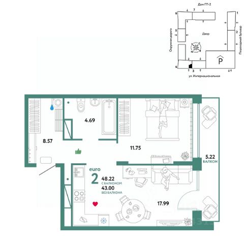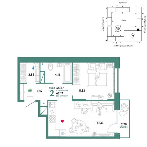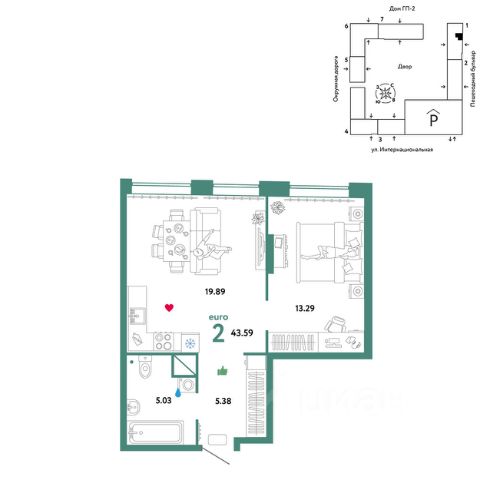Объявление от застройщика Страна Девелопмент. Покупка квартиры защищена банком. Продается 2комнатная квартира на 6 этаже от застройщика Страна Девелопмент. Площадь квартиры 43,94 кв. м. Юнион - проект двух застройщиков всероссийского масштаба: Страны Девелопмент и Группы Эталон. Мы объединили опыт и компетенции в девелопменте, создании экологичной среды, разработке ландшафтного дизайна, коммерческой инфраструктуры и продуманных планировок. Результатом синергии станет комфортное пространство для жизни, отдыха и восстановления. Рядом два парка с хвойными и смешанными лесами — "Затюменский" и "Плехановский бор". Летом можно устраивать пикники, а зимой кататься по лыжным трассам. ОТДЕЛКА Квартиры сдаются с предчистовой отделкой. Все грязные работы выполнены: произведена разводка электричества и отопления; выполнена стяжка пола; стены выровнены "под маяк". В квартире установлены розетки, выключатели и радиаторы. На входе — надежная стальная дверь. Вам остается только выбрать материалы и начать ремонт Доступна опция "Ремонт от застройщика". Стоимость можно включить в ипотеку. Вы можете заказать один из трех цветовых вариантов: светлый, натуральный или тёмный. КУХНЯ С ТЕХНИКОЙ Теперь дополнительно к ремонту можно заказать кухню со встроенной техникой. Эргономику и функциональное наполнение разработали под каждую планировку. ПОЛНАЯ МЕБЛИРОВКА Больше не нужно тратить время даже на подбор, доставку и сборку мебели.Вы можете включить в стоимость квартиры с ремонтом полную меблировку. Что входит в меблировку? - Кухня с техникой и сантехникой - Диван - Кровать - Шкаф в спальне - Шкаф в прихожей На консультации менеджер подскажет, какие акции действуют, и как получить одобрение по ипотеке с низкой ставкой. Более подробная информация по телефону. Застройщик ООО СЗ "Страна-Эталон". Проектные декларации на сайте наш.дом.рф. Купить 2-комнатную квартиру на улице Интернациональная в городе Тюмень.