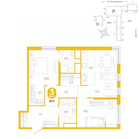 Квартира располагается в ГК "Чистые Пруды" от "Паритет девелопмент". Это флагманский проект компании в Тюмени. Расположение вдали от шумных улиц и оживленного центра создает ощущение жизни на природе и окружает тишиной и спокойствием. Есть вся необходимая социальная и коммерческая инфраструктура: магазины и сфера услуг на первых этажах. Школы, сады, поликлиника, парки в шаговой доступности. Квартал строится в районе Новой Лесобазы. Рядом выезд на объездную, что существенно экономит время. Поездка до центра города на автомобиле занимает 15-20 минут. Городские кварталы "Чистые Пруды" сформирован из домов переменной этажности и многоуровневых паркингов. Ввод 1 очереди строительства запланирован на II кв. 2028 года. Всё благоустройство квартала представлено двумя функциональными зонами: приватная внутри дворовая и общественная. Каждый закрытый двор имеет выход на единую променадную зону - бульвар. Концепция благоустройства основана на принципе модульности, что формирует основную идею приватности. Приватность проекта подчеркивает его особенный климат внутри. Модульное благоустройство позволит максимально эффективно использовать пространство двора и удовлетворить потребности различных категорий жителей. В квартирах базово выполнена улучшенная черновая отделка, которая включает в себя: выровненные стены, стяжка пола с шумоизоляцией, горизонтальная разводка отопления, установлены счетчики с телеметрией, окна с 5-камерным профилем и надежные входные двери. При желании можно добавить ремонт от застройщика и включить его в стоимость ипотеки, что позволит сэкономить на стройматериалах и переехать сразу после получения ключей. Характеристики квартиры: этаж - 7 количество комнат - 3 номер помещения - 66 площадь квартиры - 58,2 кв.мГармоничные пропорции и большие окна наполняют пространство светом, создавая уютную атмосферу. Умное зонирование позволяет удобно организовать как рабочую, так и жилую зоны, что особенно важно для современных жителей. Санузел спроектирован с учетом всех потребностей: здесь есть ванна и место для стиральной машины. Каждый метр квартиры используется с максимальной эффективностью, что делает эту планировку отличным выбором для тех, кто ценит комфорт и удобство. Продается 2-комнатная квартира в микрорайоне Казачьи Луга в городе Тюмень.