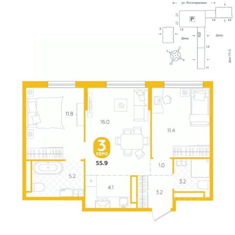 Квартира располагается в ГК "Чистые Пруды" от "Паритет девелопмент". Это флагманский проект компании в Тюмени. Расположение вдали от шумных улиц и оживленного центра создает ощущение жизни на природе и окружает тишиной и спокойствием. Есть вся необходимая социальная и коммерческая инфраструктура: магазины и сфера услуг на первых этажах. Школы, сады, поликлиника, парки в шаговой доступности. Квартал строится в районе Новой Лесобазы. Рядом выезд на объездную, что существенно экономит время. Поездка до центра города на автомобиле занимает 15-20 минут. Городские кварталы "Чистые Пруды" сформирован из домов переменной этажности и многоуровневых паркингов. Ввод 1 очереди строительства запланирован на II кв. 2028 года. Всё благоустройство квартала представлено двумя функциональными зонами: приватная внутри дворовая и общественная. Каждый закрытый двор имеет выход на единую променадную зону - бульвар. Концепция благоустройства основана на принципе модульности, что формирует основную идею приватности. Приватность проекта подчеркивает его особенный климат внутри. Модульное благоустройство позволит максимально эффективно использовать пространство двора и удовлетворить потребности различных категорий жителей. В квартирах базово выполнена улучшенная черновая отделка, которая включает в себя: выровненные стены, стяжка пола с шумоизоляцией, горизонтальная разводка отопления, установлены счетчики с телеметрией, окна с 5-камерным профилем и надежные входные двери. При желании можно добавить ремонт от застройщика и включить его в стоимость ипотеки, что позволит сэкономить на стройматериалах и переехать сразу после получения ключей. Характеристики квартиры: этаж - 2 количество комнат - 3 номер помещения - 280 площадь квартиры - 64,9 кв.мГармоничные пропорции и большие окна наполняют пространство светом, создавая уютную атмосферу. Умное зонирование позволяет удобно организовать как рабочую, так и жилую зоны, что особенно важно для современных жителей. Санузел спроектирован с учетом всех потребностей: здесь есть ванна и место для стиральной машины. Каждый метр квартиры используется с максимальной эффективностью, что делает эту планировку отличным выбором для тех, кто ценит комфорт и удобство. Продается 2-комнатная квартира в микрорайоне Казачьи Луга в городе Тюмень.
