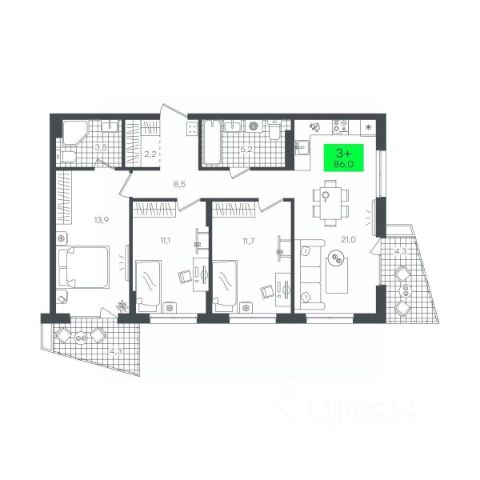 Продается трехкомнатная квартира с предчистовой отделкой в ЖК "Прео" на 5 этаже. Общая площадь: 75.58 кв.м. Высота потолков 2.7 м.