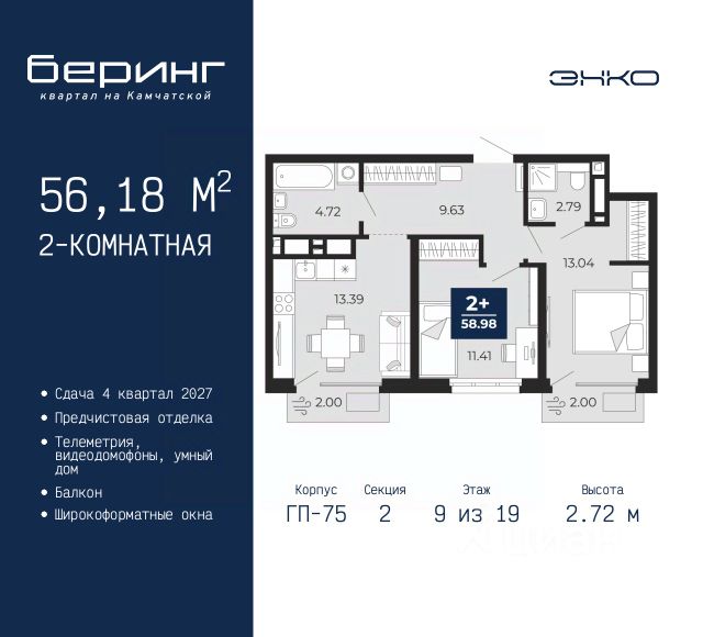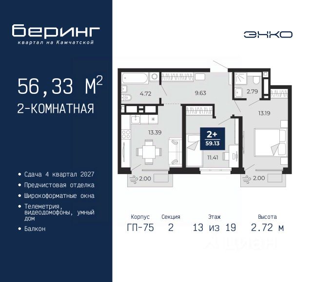 Продается 2-комн. квартира от застройщика с предчистовой отделкой в ЖК "Беринг" на 9 этаже. Общая площадь: 65.4 кв.м., жилая: 29.26 кв.м., площадь просторной кухни-столовой: 15.84 кв.м. Квартира - распашонка, без проходных комнат, окна выходят на paзные стороны дома. В квартире два балкона, два совмещенных санузла. Высота потолков 2.72 м. Дом монолитный, многоподъездный, переменной этажности, от 17 до 24 этажей. Квартира находится в 1-й секции высотой 23 этажа в корпусе ГП-75. На этаже 8 квартир. В подъезде 2 пассажирских и 1 грузовой лифт. Окончание строительства - 4 квартал 2027 года. Оформление сделки по договору долевого участия. Подобно знаменитому исследователю, мы чувствуем себя первооткрывателями этой локации. Хотим показать новую суть места, сформировать для вас жизненный опыт, которого ещё не было. Беринг — район зелёного цвета. Беринг — район, который откроется вам с другой стороны. Впечатлит новым уровнем комфорта и качеством жизни. Беринг — открытие на карте города. Первый квартал расположен в районе Тура, в границах улиц: Камчатская Западносибирская Энтузиастов. Вокруг уже есть всё для того, чтобы ежедневная рутина была лишь частью жизни и не доставляла дискомфорта. Школы и детские сады, магазины и аптеки, поликлиника, места для семейного отдыха, пеших и велопрогулок, и даже рыбалки. Масштабное озеленение дворов — визитная карточка ЭНКО и ваш оазис спокойствия, чтобы отвлечься от повседневности. Раскидистые деревья, кустарники, травы и цветы — осталось остановиться, вдохнуть и расслабиться, глядя на эту природную красоту. Стилистика подъездов продолжает концепцию Беринга, вдохновлённого Камчаткой: сдержанный, но при этом впечатляющий дизайн соседствует с удобством и функциональностью. #Zm9gdc 2-комнатная квартира в округе Ленинский в городе Тюмень.