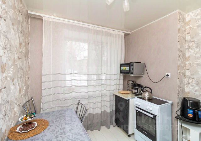 В квартире остается кухонный гарнитур с встроенной бытовой техникой, а также вместительные шкафы в прихожей и спальне.
