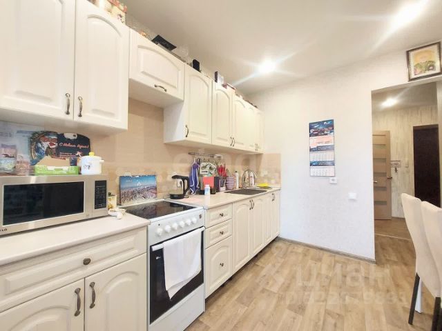 В квартире остается кухонный гарнитур с встроенной бытовой техникой, а также вместительные шкафы в прихожей и спальне.