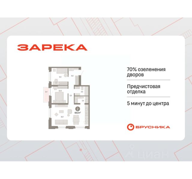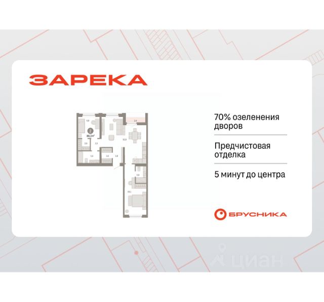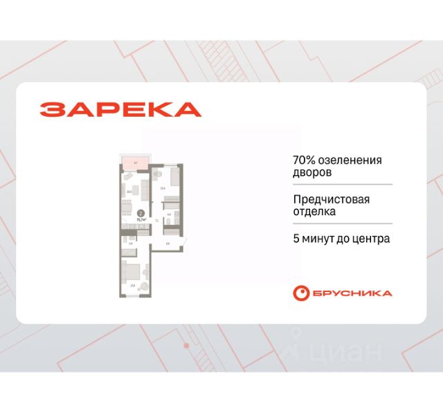 Квартира в счёт первоначального взноса по программе обмена. По всем вопросам обращайтесь в офис продаж, наши менеджеры вам все расскажут! 2-комн. квартира с предчистовой отделкой в ЖК "Зарека" на 7 этаже. Общая площадь: 67.55 кв.м., жилая: 24 кв.м., площадь просторной кухни-гостиной: 27.6 кв.м. Квартира угловая, очень светлая, естественная вентиляция при открытии окон. В квартире две лоджии, один совмещенный санузел. Высота потолков 2.7 м. Дом монолитный, многоподъездный, переменной этажности, от 6 до 16 этажей. Квартира находится в 4-й секции высотой 8 этажей в корпусе 5-2. На этаже 6 квартир. В подъезде 1 пассажирский и 1 грузовой лифт. Окончание строительства - 4 квартал 2026 года. Оформление сделки по договору долевого участия. Квартира с кухней-гостиной и двумя спальнями в жилом районе "Зарека". Особенности планировки: лоджия, предчистовая отделка. квартиры в нашей базе: ЗРК05.2-Ж4.7.4. Проект На планировочную структуру "Зареки" повлияла близость к автомобильному мосту Челюскинцев. Мы расположили жилые здания так, чтобы они постепенно удалялись от проезжей части. Приём напоминает лесенку: чем сильнее мост возвышается над участком застройки, тем дальше по отношению к нему стоят дома. Этот ступенчатый сдвиг позволил нам сформировать буфер между кварталами и оживлённой магистралью. Мы намерены высадить здесь высокие деревья и создать дополнительную защиту от дорожных шума и пыли. В границах нашего участка мы намерены разместить школу и два встроенных детских сада на 135 и 150 мест. Общественные пространства С севера на юг территорию будет пронизывать пешеходный бульвар. Мы мыслим это общественное пространство как главный центр притяжения. На нём будут сосредоточены основные детские игровые и спортивные зоны, места для встреч и спокойного отдыха. Он также сыграет роль мостика, ведущего к другим нашим проектам — "Европейскому кварталу" и "Дому у озера". Одна из базовых идей мастер-плана касается береговой линии. Сегодня озеленение этой территории носит стихииныи характер, а прямому доступу к Туре препятствует дамба. Мы хотим благоустроить пространства у воды и открыть их для людей. Архитекторы спроектировали систему многоярусных троп и спусков к реке, смотровые площадки и места для активного отдыха и пикников. #Zs9bAC Продается 2-комнатная квартира на улице Мысовская в городе Тюмень.