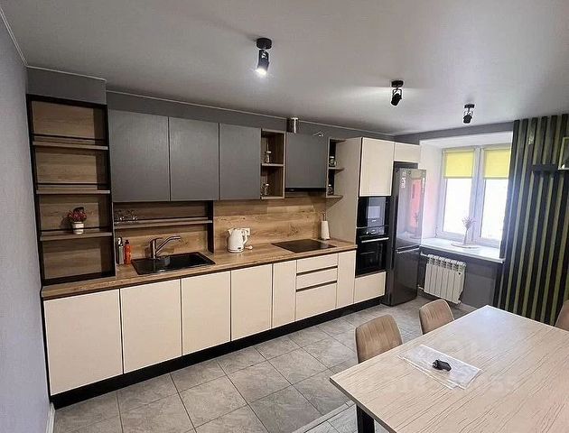 В квартире большая и просторная кухня-гостиная (была выполнена перепланировка от предыдущих владельцев). Поэтому кухня стала очень удобной и функциональной. Встроенная техника: варочная панель, духовка, вытяжка и посудомоечная машина. Фурнитура вся blum, кухня прослужит новым собственникам еще много лет!