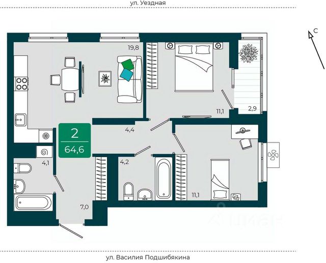 Двухкомнатная квартира в ЖК "Уездные кварталы" на 5 этаже. Квартира без отделки, новый собственник может сделать ремонт по своему проекту. Общая площадь: 68.2 кв.м., жилая: 25.7 кв.м., площадь просторной кухни-столовой: 23.3 кв.м. Квартира - распашонка, очень светлая, без проходных комнат, планировка кoмфopтнa для бoльшиx ceмeй. В квартире один балкон, два совмещенных санузла. Высота потолков 2.72 м. Дом монолитный, черырехподъездный, переменной этажности, от 9 до 16 этажей. Квартира находится в 4-й секции высотой 9 этажей в корпусе ГП-5.2. На этаже 6 квартир. В подъезде 1 пассажирский и 1 грузовой лифт. Окончание строительства - 4 квартал 2026 года. Оформление сделки по договору долевого участия. "Уездные кварталы" - семейный жилой комплекс комфорт-класса с авторской архитектурой и трехуровневым ландшафтным озеленением. Рядом расположены крупные транспортные развязки, которые позволяют добраться в любую точку города за 15 минут. Жилой комплекс находится в современном районе с развитой инфраструктурой, на первой линии Тюменской Слободы. Вокруг есть всё необходимое в шаговой доступности: новые детские сады и школы, остановки общественного транспорта, магазины, кафе и рестораны, поликлиника, детская школа искусств, парки и спортивный комплекс. На первых этажах квартала расположена собственная коммерческая сеть, а также свой соседский центр. Проект включает 5 домов переменной этажности с более чем 100 планировками - с террасами, французскими балконами и мастер-спальнями. Закрытые дворы оборудованы интерактивными площадками для игр, спортивными зонами и местами тихого отдыха. Вдоль жилого комплекса расположен пешеходный бульвар с сухим фонтаном, а для автомобилей предусмотрен теплый паркинг. Часть квартир можно приобрести с ремонтом, мебелью и техникой от застройщика, а расходы включить в ипотечный платеж. #z65E2b Купить 2-комнатную квартиру на улице Андрея Бушуева в городе Тюмень.