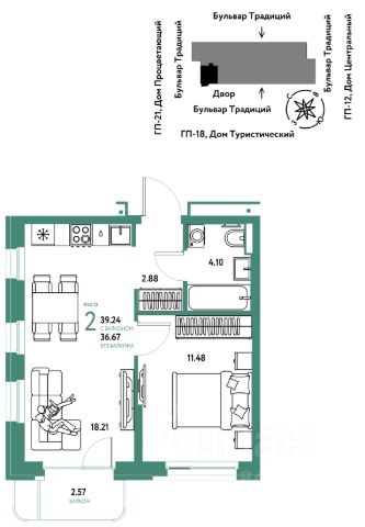 Объявление от застройщика Страна Девелопмент. Покупка квартиры защищена банком. Продается 2комнатная квартира на 11 этаже от застройщика Страна Девелопмент. Площадь квартиры 38,51 кв. м. О ПРOЕКТЕ Mикpорайон "Домaшний" — этo 6 очередей стpоитeльcтвa, 24 дома пеpемeннoй этажнoсти. Каждый дом уникальный. Внутри микрорайона появится огромный пешеходный бульвар — бульвар Традиций. Центром притяжения станут открытые пространства для отдыха жителей и гостей микрорайона, которые легко меняются под сезонные сценарии отдыха: новогодняя елка, ярмарки, кинопоказы и т.д. У каждого дома обустроен приватный двор с зонами для активного и спокойного отдыха. В активной зоне детские разновозрастные площадки с горками, песочницами и качелями, воркаут-зоны. В спокойной — скамейки, мини-амфитеатры, закрытые перголы. Уютной атмосферу сделает обильное озеленение и освещение "домашними" торшерами. ОТДЕЛКА Квартиры сдаются с предчистовой отделкой. Все грязные работы выполнены: произведена разводка электричества и отопления; выполнена стяжка пола; стены выровнены "под маяк". В квартире установлены розетки, выключатели и радиаторы. На входе — надежная стальная дверь. Вам остается только выбрать материалы и начать ремонт Доступна опция "Ремонт от застройщика". Стоимость можно включить в ипотеку. КУХНЯ С ТЕХНИКОЙ Теперь дополнительно к ремонту можно заказать кухню со встроенной техникой. Эргономику и функциональное наполнение разработали под каждую планировку. ПОЛНАЯ МЕБЛИРОВКА Больше не нужно тратить время даже на подбор, доставку и сборку мебели.Вы можете включить в стоимость квартиры с ремонтом полную меблировку. Что входит в меблировку? - Кухня с техникой и сантехникой - Диван - Кровать - Шкаф в спальне - Шкаф в прихожей Купить 2-комнатную квартиру на улице Андрея Кореневского в городе Тюмень.