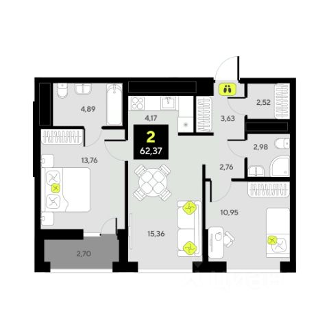 Новая квартира в ЖК "Домашний" напрямую от федеральной группы компаний "Страна Девелопмент". Финансовый партнер — банк "ДОМ.РФ". Продается 3комнатная квартира на 9 этаже от застройщика Страна Девелопмент. Площадь квартиры 60,65 кв. м. ЖК "ДОМАШНИЙ" Жилой комплекс "Домашний" это первый цифровой район в Сибири, где жители заходят в парадные по Face ID, автомобили заезжают в паркинг по сканированию номера, а лифт автоматически спускается на первый этаж при открытии домофона. Даже во дворах — USB-розетки и беседки с подогревом. ПРЕИМУЩЕСТВА - Школа, зеленый сквер и пешеходный бульвар прямо внутри квартала - Закрытые дворы у каждого дома для активного и спокойного отдыха - Охрана, видеонаблюдение 24/7 и доступ к камерам в мобильном приложении - Сквозные парадные с прозрачными входными группами, колясочными и велосипедными - Паркинг с въездом по считыванию номеров, системой контроля выбросов CO2, тележками для покупок и велопарковкой - Торговая галерея на первом этаже дома ОТДЕЛКА Квартиры сдаются с предчистовой отделкой: произведена разводка электричества и отопления, выполнена стяжка пола, стены выровнены "под маяк", установлены розетки, выключатели и радиаторы. ДИЗАЙНЕРСКАЯ ОТДЕЛКА При покупке квартиры в ЖК "Домашний" можно включить стоимость ремонта в ипотеку. Пять вариантов на выбор: Хлопковая нить, Серый шторм, Белый камень, Шалфей, Голубой вереск. СПОСОБЫ ПОКУПКИ Сотрудники "Страна Девелопмент" будут сопровождать вас на каждом этапе сделки, помогут получить одобрение по ипотеке или снизить ежемесячный платеж. - ипотека - материнский капитал -100% оплата наличными