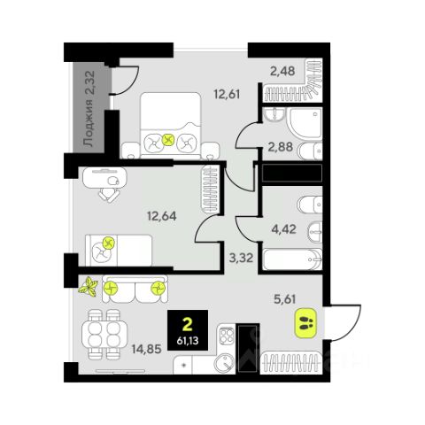 Объявление от застройщика Страна Девелопмент. Покупка квартиры защищена банком. Продается 2комнатная квартира на 2 этаже от застройщика Страна Девелопмент. Площадь квартиры 53,09 кв. м. О ПРOЕКТЕ Mикpорайон "Домaшний" — этo 6 очередей стpоитeльcтвa, 24 дома пеpемeннoй этажнoсти. Каждый дом уникальный. Внутри микрорайона появится огромный пешеходный бульвар — бульвар Традиций. Центром притяжения станут открытые пространства для отдыха жителей и гостей микрорайона, которые легко меняются под сезонные сценарии отдыха: новогодняя елка, ярмарки, кинопоказы и т.д. У каждого дома обустроен приватный двор с зонами для активного и спокойного отдыха. В активной зоне детские разновозрастные площадки с горками, песочницами и качелями, воркаут-зоны. В спокойной — скамейки, мини-амфитеатры, закрытые перголы. Уютной атмосферу сделает обильное озеленение и освещение "домашними" торшерами. ОТДЕЛКА Квартиры сдаются с предчистовой отделкой. Все грязные работы выполнены: произведена разводка электричества и отопления; выполнена стяжка пола; стены выровнены "под маяк". В квартире установлены розетки, выключатели и радиаторы. На входе — надежная стальная дверь. Вам остается только выбрать материалы и начать ремонт Доступна опция "Ремонт от застройщика". Стоимость можно включить в ипотеку. КУХНЯ С ТЕХНИКОЙ Теперь дополнительно к ремонту можно заказать кухню со встроенной техникой. Эргономику и функциональное наполнение разработали под каждую планировку. ПОЛНАЯ МЕБЛИРОВКА Больше не нужно тратить время даже на подбор, доставку и сборку мебели.Вы можете включить в стоимость квартиры с ремонтом полную меблировку. - Что входит в меблировку? - Кухня с техникой и сантехникой - Диван - Кровать - Шкаф в спальне - Шкаф в прихожей Цены на квартиры указаны без учета скидок. На консультации менеджер подскажет, какие акции действуют, и как получить одобрение по ипотеке с низкой ставкой. Более подробная информация по телефону. Застройщик ООО СЗ "Страна Запад". Проектные декларации на сайте наш.дом.рф.