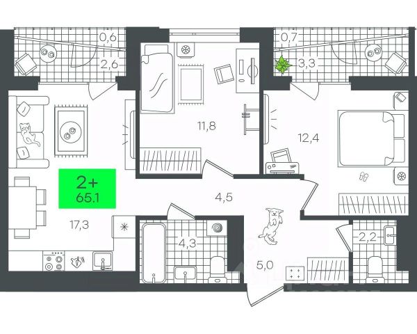 Продажа двухкомнатных квартир на улице Николая Глебова в городе Тюмень от 6 млн руб.