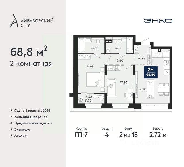Двухкомнатная квартира с предчистовой отделкой в ЖК "Дивный квартал у озера" на 13 этаже. Общая площадь: 62.68 кв.м., жилая: 31.06 кв.м., площадь просторной кухни-столовой: 11.5 кв.м. Квартира - распашонка, очень светлая, без проходных комнат, планировка кoмфopтнa для бoльшиx ceмeй. В квартире одна лоджия, один раздельный санузел. Высота потолков 2.7 м. Квартира будет сдаваться с предчистовой отделкой White Box: выровнены и оштукатурены стены, проведено электричество и отопление, установлены радиаторы. Вы также можете приобрести квартиру с ремонтом от застройщика, представленным в трех цветовых решениях Scandi, Wood и Coffee и включающим: ламинат, обои под покраску, двери, натяжной потолок, санузел с сантехникой. При желании вы можете заказать отделку под ключ, варианты возможных решений представлены в альбоме фотографий. Дом монолитный, черырехподъездный, переменной этажности, от 7 до 23 этажей. Квартира находится в 3-й секции высотой 17 этажей в корпусе ГП-4. На этаже 5 квартир. В подъезде 1 пассажирский и 1 грузовой лифт. Окончание строительства - 4 квартал 2025 года. Оформление сделки по договору долевого участия. "Дивный квартал у озера" современный жилой квартал, удобно расположенный в 10-ти минутах от центра Тюмени, в уютном районе рядом с зеленым массивом и озером Алебашево. Комплекс находится между улицами Мельникайте и Алебашевская, что обеспечивает его хорошую транспортную доступность до центра на автомобиле всего 10 минут. Рядом с комплексом расположен Лесопарк имени Гагарина, экзотический Парк дружбы между Россией и Республикой Корея. "Дивный квартал у озера" объединяет архитектуру современной городской застройки и природную эстетику. Уютные дворы жилого комплекса будут не только безопасными, но и тихими. Закрытая территория надёжно защищена от шума и посторонних глаз. Здесь будут места для отдыха, детские площадки, зоны для выгула собак. В холлах первого этажа расположены мягкая зона ожидания, общественные санузлы и просторная колясочная. Квартал будет располагать богатой инфраструктурой: на первых этажах домов разместятся магазины, пекарни, кофейни, пункты выдачи, аптеки, детские центры, цветочные салоны и многое другое, что сделает жизнь поистине комфортной. В комплексе есть теплый подземный паркинг и кладовые. #zWaMfb 2-комнатная квартира на улице Пожарных и Спасателей в городе Тюмень.