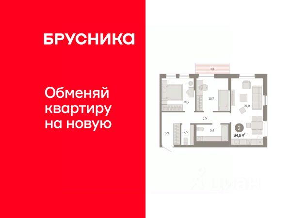 Квартира в рассрочку без процентов от застройщика. Эксклюзивные ипотечные условия. Дом будет сдан в 4 квартале 2025 года. Информация по телефону, наши менеджеры вам все расскажут! Продается двухкомнатная квартира от застройщика с предчистовой отделкой в ЖК "Республики 205" на 3 этаже. Общая площадь: 64.75 кв.м., жилая: 21.4 кв.м., площадь просторной кухни-гостиной: 21 кв.м. Угловая квартира, очень светлая, естественная вентиляция при открытии окон. В квартире один балкон, один совмещенный и один раздельный санузел. Высота потолков 2.6 м. Купить квартиру можно с помощью программ покупки от застройщика Брусника: - ипотека по эксклюзивной ставке с помощью в получении положительного кредитного решения через сервис ипотечный брокер; - квартиры в рассрочку без процентов от застройщика Брусника; - обмен квартиры на новую. Получить одобрение ипотеки или рассрочку, а также осуществить обмен квартир можно онлайн. Дом монолитный, многоподъездный, переменной этажности, от 9 до 17 этажей. Квартира находится в 1-й секции высотой 17 этажей в корпусе 1. На этаже 7 квартир. В подъезде 1 пассажирский и 1 грузовой лифт. Начало строительства - 2 квартал 2023 года. Окончание строительства - 4 квартал 2025 года. Оформление сделки по договору долевого участия. Район Проект расположен в границах улиц Пермякова, Энергетиков, Воровского и Республики. До центра города — 10 минут на машине. Рядом — автомобильная развязка на пересечении улиц Пермякова и Республики. В шаговой доступности есть школы, детские сады, поликлиники, крупный торговый центр, автовокзал и несколько скверов. Проект "Республики 205" — это проект комплексного развития территории, уникальный по своему наполнению. Переосмысляя бывшую территорию завода медицинского оборудования, мы создадим новое место силы — микрорайон, насыщенный деловой, развлекательной, рекреационной, игровой, образовательной и медицинской инфраструктурой. До каждого полезного сервиса здесь можно будет дойти за 15 минут. Локальными центрами "Республики 205" будут общественные пространства — скверы, парки, бульвары и площади. В границах нашего участка мы намерены разместить школу, рассчитанную на 1550 учеников, два детских сада на 300 мест и встроенный детский сад на 100 мест. В одном из цехов бывшего завода расположится креативный кластер "Кузница". Он станет площадкой для нескольких институций — галереи, лектория, книжного магазина-библиотеки, кинобара и точек креативного pop-up-ритейла. Пешеходные бульвары внутри района соединят между собой улицу ресторанов, детские и спортивные площадки, событийную площадь и летний кинотеатр. Идентификатор квартиры по базе застройщика: МЕД01-01-1-1. #zM5bV6 2-комнатная квартира на улице Республики в городе Тюмень.