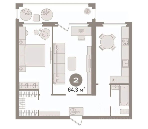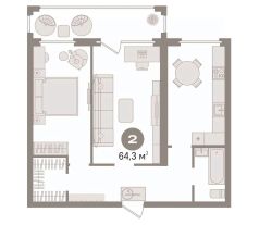 Характеристики квартиры: площадь 86 кв.м. Квартира имеет функциональную планировку: большая кухня-гостиная 21,2 м2, спальня 14,2 м2, гостиная 26,4 м2.