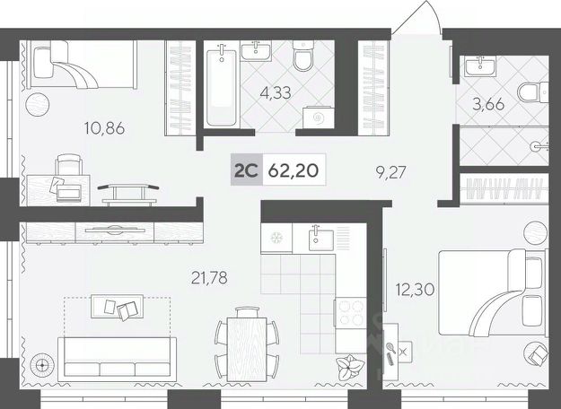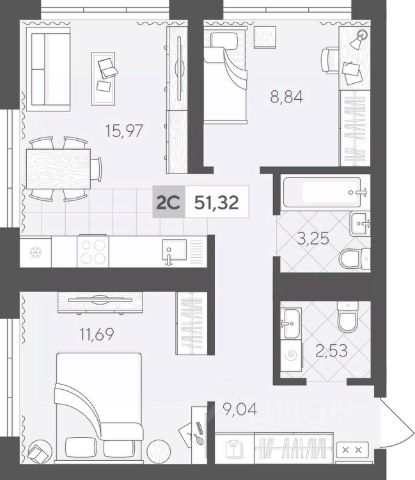 Продаётся 2-комнатная квартира в строящемся доме (ГП 2 (Сергея Корепанова, 34)), срок сдачи: IV-кв. 2027, общей площадью 55.09 кв.м., на 2 этаже. Новый жилой комплекс "Скандиа. Квартал у Леса" от Специализированного застройщика "СКАНДИА У ЛЕСА" расположен в г. Тюмень на ул. Бориса Прудаева.
