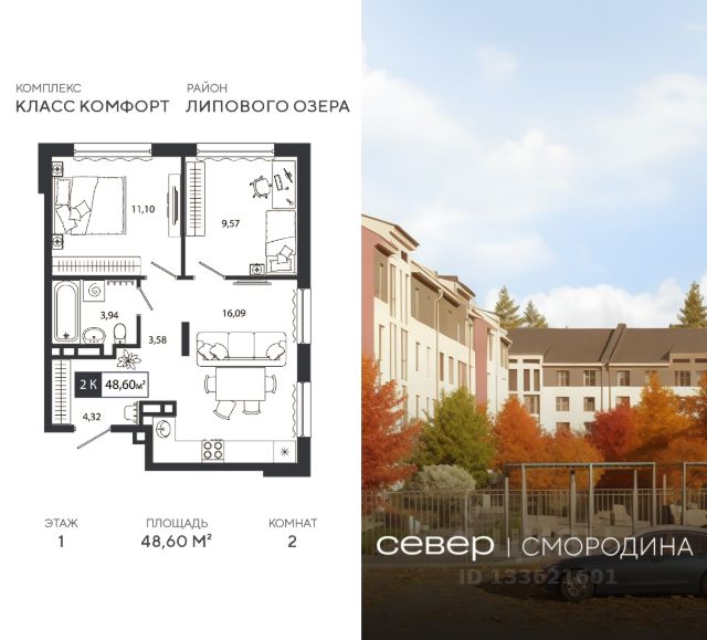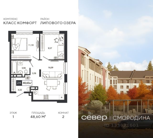 Продаётся квартира площадью 50.32 м2 в жилом комплексе "Смородина". Квартира находится на 2 этаже, жилая площадь квартиры 20.67 м2, площадь просторной кухни — 16.09 м2. Среди особенностей планировки — изолированные комнаты с окнами на одну сторону, 1 совмещённый санузел. Срок сдачи — IV кв. 2026 Жилой комплекс "Смородина" — это: - уютный малоэтажный комплекс в районе ММС - дома высотой 4 этажа - квартиры от студий до семейных вариантов с отапливаемыми лоджиями - экологичные материалы в благоустройстве территории Окружение В 5 минутах ходьбы от проекта — озеро Липовое с песчаным пляжем и лесопарковая зона. Инфраструктура В шаговой доступности есть все для комфортной жизни: школы, детские сады, магазины и аптеки. Рядом с проектом — остановка общественного транспорта. Благоустройство Прямо во дворе — собственные грядки для жителей, где можно выращивать зелень и цветы. Для детей оборудованы детские площадки из натуральных материалов. Лобби Вдохновленные современными тенденциями наши парадные разработаны с акцентом на эстетическую привлекательность и практичность. Использование натуральных материалов и ярких цветовых акцентов создает атмосферу уюта и стиля. Планировки Среди многообразия продуманных планировок есть и уютные студии, и просторные семейные варианты. Во всех квартирах предусмотрены отапливаемые лоджии, где можно устроить зону отдыха или рабочий кабинет.