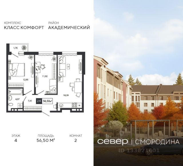 Продаётся квартира площадью 53.75 м2 в жилом комплексе "Смородина". Квартира находится на 1 этаже дома, который будет введен в эксплуатацию в first квартале 2026 года. Жилая площадь квартиры 22.40 м2, площадь просторной кухни — 16.71 м2. Среди особенностей планировки — изолированные комнаты с окнами на одну сторону, 1 совмещённый санузел. Жилой комплекс "Смородина" — это: уютный малоэтажный комплекс в районе ММС дома высотой 4 этажа квартиры от студий до семейных вариантов с отапливаемыми лоджиями экологичные материалы в благоустройстве территории 1 очередь — срок сдачи в 2025 году 2 очередь — III кв. 2026 3 очередь — IV кв. 2026 Окружение В 5 минутах ходьбы от проекта — озеро Липовое с песчаным пляжем и лесопарковая зона. Инфраструктура В шаговой доступности есть все для комфортной жизни: школы, детские сады, магазины и аптеки. Рядом с проектом — остановка общественного транспорта. Благоустройство Прямо во дворе — собственные грядки для жителей, где можно выращивать зелень и цветы. Для детей оборудованы детские площадки из натуральных материалов. Лобби Вдохновленные современными тенденциями наши парадные разработаны с акцентом на эстетическую привлекательность и практичность. Использование натуральных материалов и ярких цветовых акцентов создает атмосферу уюта и стиля. Планировки Среди многообразия продуманных планировок есть и уютные студии, и просторные семейные варианты. Во всех квартирах предусмотрены отапливаемые лоджии, где можно устроить зону отдыха или рабочий кабинет.