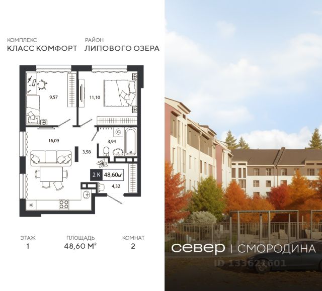 Продаётся квартира площадью 50.32 м2 в жилом комплексе "Смородина". Квартира находится на 4 этаже, жилая площадь квартиры 20.67 м2, площадь просторной кухни — 16.09 м2. Среди особенностей планировки — изолированные комнаты с окнами на одну сторону, 1 совмещённый санузел. Срок сдачи — IV кв. 2026 Жилой комплекс "Смородина" — это: - уютный малоэтажный комплекс в районе ММС - дома высотой 4 этажа - квартиры от студий до семейных вариантов с отапливаемыми лоджиями - экологичные материалы в благоустройстве территории Окружение В 5 минутах ходьбы от проекта — озеро Липовое с песчаным пляжем и лесопарковая зона. Инфраструктура В шаговой доступности есть все для комфортной жизни: школы, детские сады, магазины и аптеки. Рядом с проектом — остановка общественного транспорта. Благоустройство Прямо во дворе — собственные грядки для жителей, где можно выращивать зелень и цветы. Для детей оборудованы детские площадки из натуральных материалов. Лобби Вдохновленные современными тенденциями наши парадные разработаны с акцентом на эстетическую привлекательность и практичность. Использование натуральных материалов и ярких цветовых акцентов создает атмосферу уюта и стиля. Планировки Среди многообразия продуманных планировок есть и уютные студии, и просторные семейные варианты. Во всех квартирах предусмотрены отапливаемые лоджии, где можно устроить зону отдыха или рабочий кабинет.