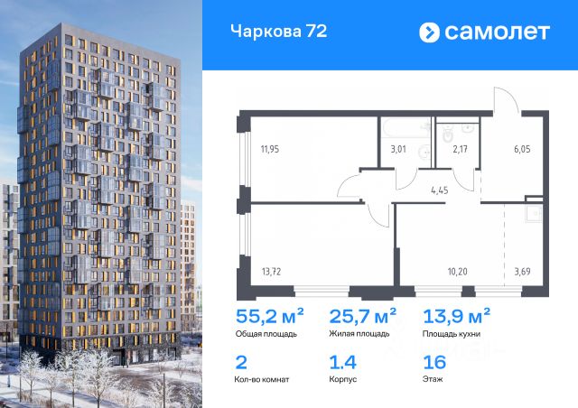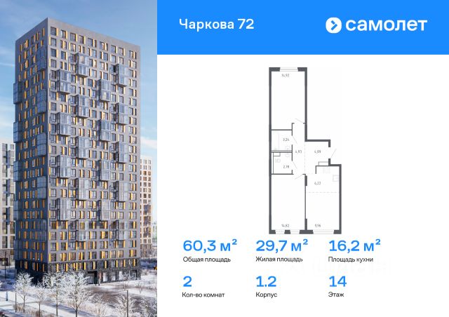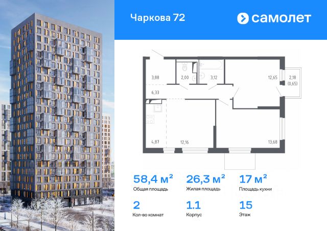 Строим кварталы для жизни с заботой о будущем. Предлагается 2-комнатная квартира комфорт-класса 61,34 кв.м в корпусе 1.3 на 15 этаже, в ЖК "Чаркова 72" Квартира с предчистовой отделкой. Доступность дополнительных опций уточняйте у застройщика. Приобрести квартиру возможно по специальным акциям от застройщика, с текущими условиями акций можно ознакомиться в блоке "Акций". Цена динамическая и может отличаться, уточняйте актуальность у застройщика. Идеальное сочетание городского комфорта и размеренной жизни — квартал "Чаркова 72" на северо-востоке города. В дизайне 17-24-этажных домов с панорамными балконами нашли отражение нотки сибирской природы. От "Чаркова 72" удобно добираться до центра города — всего 17 минут пути. А в 2 минутах от дома находится Тобольский тракт. Для семейного отдыха отлично подойдет парк Гагарина — он находится в 7 минутах от квартала. В закрытых дворах тихо и уютно — все авто остались на одном из 4 многоуровневых паркингов, которые находятся за территорией квартала. Можно спокойно гулять по бульвару и заниматься йогой на спортивной площадке. На первых этажах домов — кафе и магазины. Рядом с проектом — детские сады и школы, городская поликлиника и МФЦ. Во всех квартирах есть выводы под кондиционеры, на подземных этажах — индивидуальные кладовые, на первых — места для хранения велосипедов и колясок. В квартирах можно выбрать варианты отделки: чистовая, черновая и улучшенная из материалов повышенного класса.