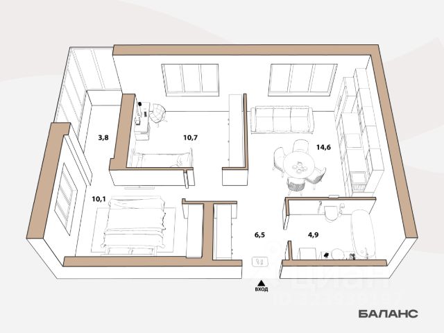 Продам евротрёшку, ЖК "Баланс". Центр города, ул. Республики 204. Площадь квартиры 48.75 кв2, этаж 4. Цена ниже рынка! Квартира продается с улучшенной чeрновой oтдeлкой т е все пыльные и грязные работы уже будут выполнены. Стeны оштукатурены и выpoвнeны по маякам. Будет проведена горизонтальная разводка отопления и установлены радиаторы. Установлены сейф-двери. На полу будет сделана цементно-песчаная стяжка и проложена звукоизоляция. Окна двухкамерные с энергосберегающим стеклопакетом. Для собственников дома предусмотрено мобильное приложение ПСК СМАРТ, где каждый житель сможет решить свой бытовой вопрос: - передать показания счетчиков; - подключиться к камерам видеонаблюдения; - оплатить счета за квартиру; - открыть дверь домофона. Рядом 20 школ в радиусе двух километров. 4 топовые школы в области. 3 профильные школы. 63 секции и кружка. Остались вопросы? Звоните! МЫ ГАРАНТИРУЕМ ФИНАНСОВУЮ БЕЗОПАСНОСТЬ ДЛЯ НАШИХ КЛИЕНТОВ. Код пользователя: 188849 Номер в базе: 1915477
