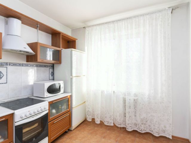 Останется кухонный гарнитур и электрическая плита и другая мебель.