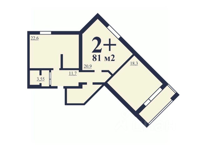 Просторная большая, спокойно встанет кровать 180*200 и детские кроватки, комод и шкаф (помимо того, что уже есть угловой).
