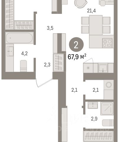 Двухкомнатная квартира с предчистовой отделкой в ЖК "Зарека" на 5 этаже. Общая площадь: 58.98 кв.м., жилая: 27.4 кв.м., площадь просторной кухни-гостиной: 16.3 кв.м. Комнаты изолированные, все окна выходят на одну сторону. В квартире один балкон, два совмещенных санузла. Высота потолков 2.7 м. Дом монолитный, многоподъездный, переменной этажности, от 7 до 16 этажей. Квартира находится в 1-й секции высотой 8 этажей в корпусе 2-1. На этаже 7 квартир. В подъезде 1 пассажирский и 1 грузовой лифт. Окончание строительства - 2 квартал 2029 года. Оформление сделки по договору долевого участия. Квартира с кухней-гостиной и двумя спальнями в жилом районе "Зарека". Особенности планировки: балкон, вид во двор, второй санузел, мастер-спальня, предчистовая отделка, разнесённые спальни. О доме Замкнутый квартал высотой 8 этажей с 16-ти этажной башней-доминантой и двором на стилобате двухуровневого паркинга. Дом 2.1 сочетает в себе приемы классической и современной архитектуры. Выразительность достигается благодаря симметричной композиции фасада, чередование массинга идет за счет эркеров и подрезок. Фасады первых этажей выполнены из клинкерного кирпича, выше - штукатурные. Акцентом на фасаде являются металлические импосты окон, темно-серого цвета, который будет контрастировать со светлыми оттенками самого фасада. квартиры в нашей базе: ЗРК02.1-Ж1.5.1. Проект На планировочную структуру "Зареки" повлияла близость к автомобильному мосту Челюскинцев. Мы расположили жилые здания так, чтобы они постепенно удалялись от проезжей части. Приём напоминает лесенку: чем сильнее мост возвышается над участком застройки, тем дальше по отношению к нему стоят дома. Этот ступенчатый сдвиг позволил нам сформировать буфер между кварталами и оживлённой магистралью. Мы намерены высадить здесь высокие деревья и создать дополнительную защиту от дорожных шума и пыли. В границах нашего участка мы намерены разместить школу и два встроенных детских сада на 135 и 150 мест. Общественные пространства С севера на юг территорию будет пронизывать пешеходный бульвар. Мы мыслим это общественное пространство как главный центр притяжения. На нём будут сосредоточены основные детские игровые и спортивные зоны, места для встреч и спокойного отдыха. Он также сыграет роль мостика, ведущего к другим нашим проектам — "Европейскому кварталу" и "Дому у озера". Одна из базовых идей мастер-плана касается береговой линии. Сегодня озеленение этой территории носит стихииныи характер, а прямому доступу к Туре препятствует дамба. Мы хотим благоустроить пространства у воды и открыть их для людей. Архитекторы спроектировали систему многоярусных троп и спусков к реке, смотровые площадки и места для активного отдыха и пикников. #2MeSb4 2-комнатная квартира в микрорайоне Зарека в городе Тюмень.