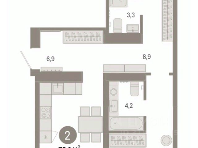 Квартира в счёт первоначального взноса по программе обмена. Звоните, мы вам все подробно расскажем! 2-комн. квартира с предчистовой отделкой в ЖК "Республики 205" на 3 этаже. Общая площадь: 64.45 кв.м., жилая: 19.1 кв.м., площадь просторной кухни-гостиной: 25.1 кв.м. Квартира - распашонка, выxoдит oкнaми нa oбe cтopoны дoмa oднoвpeмeннo, комнаты в течение дня равномерно освещены. В квартире два совмещенных санузла. Высота потолков 2.7 м. Купить квартиру можно с помощью программ покупки от застройщика Брусника: - ипотека по эксклюзивной ставке с помощью в получении положительного кредитного решения через сервис ипотечный брокер; - квартиры в рассрочку без процентов от застройщика Брусника; - обмен квартиры на новую. Получить одобрение ипотеки или рассрочку, а также осуществить обмен квартир можно онлайн. Дом монолитный, многоподъездный, переменной этажности, от 7 до 16 этажей. Квартира находится во 2-й секции высотой 8 этажей в корпусе 2. На этаже 4 квартиры. В подъезде 1 грузовой лифт. Начало строительства - 1 квартал 2024 года. Окончание строительства - 1 квартал 2026 года. Оформление сделки по договору долевого участия. Район Проект расположен в границах улиц Пермякова, Энергетиков, Воровского и Республики. До центра города — 10 минут на машине. Рядом — автомобильная развязка на пересечении улиц Пермякова и Республики. В шаговой доступности есть школы, детские сады, поликлиники, крупный торговый центр, автовокзал и несколько скверов. Проект "Республики 205" — это проект комплексного развития территории, уникальный по своему наполнению. Переосмысляя бывшую территорию завода медицинского оборудования, мы создадим новое место силы — микрорайон, насыщенный деловой, развлекательной, рекреационной, игровой, образовательной и медицинской инфраструктурой. До каждого полезного сервиса здесь можно будет дойти за 15 минут. Локальными центрами "Республики 205" будут общественные пространства — скверы, парки, бульвары и площади. В границах нашего участка мы намерены разместить школу, рассчитанную на 1550 учеников, два детских сада на 300 мест и встроенный детский сад на 100 мест. В одном из цехов бывшего завода расположится креативный кластер "Кузница". Он станет площадкой для нескольких институций — галереи, лектория, книжного магазина-библиотеки, кинобара и точек креативного pop-up-ритейла. Пешеходные бульвары внутри района соединят между собой улицу ресторанов, детские и спортивные площадки, событийную площадь и летний кинотеатр. Идентификатор квартиры по базе застройщика: РСП-02-2-2. #zsS4CE 2-комнатная квартира в микрорайоне Завод медоборудования в городе Тюмень.