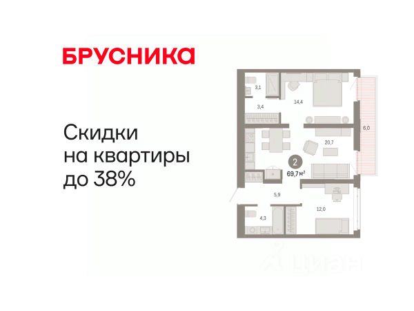 Квартира в счёт первоначального взноса по программе обмена. Информация по телефону, мы вам все подробно расскажем! 2-комн. квартира с предчистовой отделкой в ЖК "Республики 205" на 5 этаже. Общая площадь: 67.52 кв.м., жилая: 24.4 кв.м., площадь просторной кухни-гостиной: 20.9 кв.м. Комнаты изолированные, все окна выходят на одну сторону. В квартире два балкона, два совмещенных санузла. Высота потолков 2.7 м. Купить квартиру можно с помощью программ покупки от застройщика Брусника: - ипотека по эксклюзивной ставке с помощью в получении положительного кредитного решения через сервис ипотечный брокер; - квартиры в рассрочку без процентов от застройщика Брусника; - обмен квартиры на новую. Получить одобрение ипотеки или рассрочку, а также осуществить обмен квартир можно онлайн. Дом монолитный, многоподъездный, переменной этажности, от 7 до 16 этажей. Квартира находится в 1-й секции высотой 9 этажей в корпусе 2. На этаже 10 квартир. В подъезде 1 грузовой лифт. Начало строительства - 1 квартал 2024 года. Окончание строительства - 1 квартал 2026 года. Оформление сделки по договору долевого участия. Район Проект расположен в границах улиц Пермякова, Энергетиков, Воровского и Республики. До центра города — 10 минут на машине. Рядом — автомобильная развязка на пересечении улиц Пермякова и Республики. В шаговой доступности есть школы, детские сады, поликлиники, крупный торговый центр, автовокзал и несколько скверов. Проект "Республики 205" — это проект комплексного развития территории, уникальный по своему наполнению. Переосмысляя бывшую территорию завода медицинского оборудования, мы создадим новое место силы — микрорайон, насыщенный деловой, развлекательной, рекреационной, игровой, образовательной и медицинской инфраструктурой. До каждого полезного сервиса здесь можно будет дойти за 15 минут. Локальными центрами "Республики 205" будут общественные пространства — скверы, парки, бульвары и площади. В границах нашего участка мы намерены разместить школу, рассчитанную на 1550 учеников, два детских сада на 300 мест и встроенный детский сад на 100 мест. В одном из цехов бывшего завода расположится креативный кластер "Кузница". Он станет площадкой для нескольких институций — галереи, лектория, книжного магазина-библиотеки, кинобара и точек креативного pop-up-ритейла. Пешеходные бульвары внутри района соединят между собой улицу ресторанов, детские и спортивные площадки, событийную площадь и летний кинотеатр. Идентификатор квартиры по базе застройщика: РСП-02-1-1. #zSMeWV 2-комнатная квартира в микрорайоне Завод медоборудования в городе Тюмень.