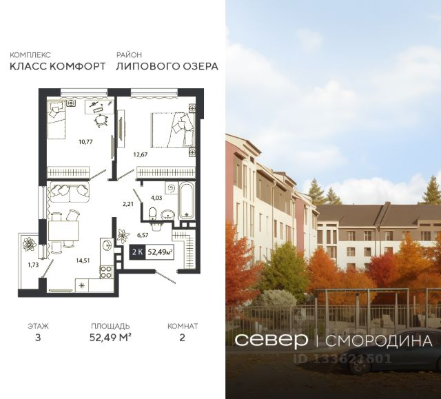 Продаётся квартира площадью 50.32 м2 в жилом комплексе "Смородина". Квартира находится на 2 этаже, жилая площадь квартиры 20.67 м2, площадь просторной кухни — 16.09 м2. Среди особенностей планировки — изолированные комнаты с окнами на одну сторону, 1 совмещённый санузел. Срок сдачи — IV кв. 2026 Жилой комплекс "Смородина" — это: - уютный малоэтажный комплекс в районе ММС - дома высотой 4 этажа - квартиры от студий до семейных вариантов с отапливаемыми лоджиями - экологичные материалы в благоустройстве территории Окружение В 5 минутах ходьбы от проекта — озеро Липовое с песчаным пляжем и лесопарковая зона. Инфраструктура В шаговой доступности есть все для комфортной жизни: школы, детские сады, магазины и аптеки. Рядом с проектом — остановка общественного транспорта. Благоустройство Прямо во дворе — собственные грядки для жителей, где можно выращивать зелень и цветы. Для детей оборудованы детские площадки из натуральных материалов. Лобби Вдохновленные современными тенденциями наши парадные разработаны с акцентом на эстетическую привлекательность и практичность. Использование натуральных материалов и ярких цветовых акцентов создает атмосферу уюта и стиля. Планировки Среди многообразия продуманных планировок есть и уютные студии, и просторные семейные варианты. Во всех квартирах предусмотрены отапливаемые лоджии, где можно устроить зону отдыха или рабочий кабинет.