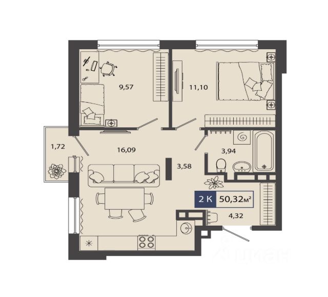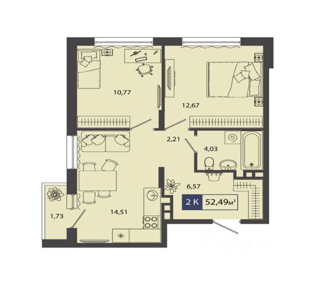 Продаётся квартира площадью 50.32 м2 в жилом комплексе "Смородина". Квартира находится на 2 этаже дома, который будет введен в эксплуатацию в 1 квартале 2026 года. Жилая площадь квартиры 20.67 м2, площадь просторной кухни — 16.09 м2. Среди особенностей планировки — изолированные комнаты с окнами на одну сторону, 1 совмещённый санузел. Жилой комплекс "Смородина" — это: уютный малоэтажный комплекс в районе ММС дома высотой 4 этажа квартиры от студий до семейных вариантов с отапливаемыми лоджиями экологичные материалы в благоустройстве территории 1 очередь — срок сдачи в 2025 году 2 очередь — III кв. 2026 3 очередь — IV кв. 2026 Окружение В 5 минутах ходьбы от проекта — озеро Липовое с песчаным пляжем и лесопарковая зона. Инфраструктура В шаговой доступности есть все для комфортной жизни: школы, детские сады, магазины и аптеки. Рядом с проектом — остановка общественного транспорта. Благоустройство Прямо во дворе — собственные грядки для жителей, где можно выращивать зелень и цветы. Для детей оборудованы детские площадки из натуральных материалов. Лобби Вдохновленные современными тенденциями наши парадные разработаны с акцентом на эстетическую привлекательность и практичность. Использование натуральных материалов и ярких цветовых акцентов создает атмосферу уюта и стиля. Планировки Среди многообразия продуманных планировок есть и уютные студии, и просторные семейные варианты. Во всех квартирах предусмотрены отапливаемые лоджии, где можно устроить зону отдыха или рабочий кабинет.