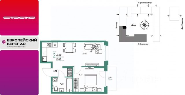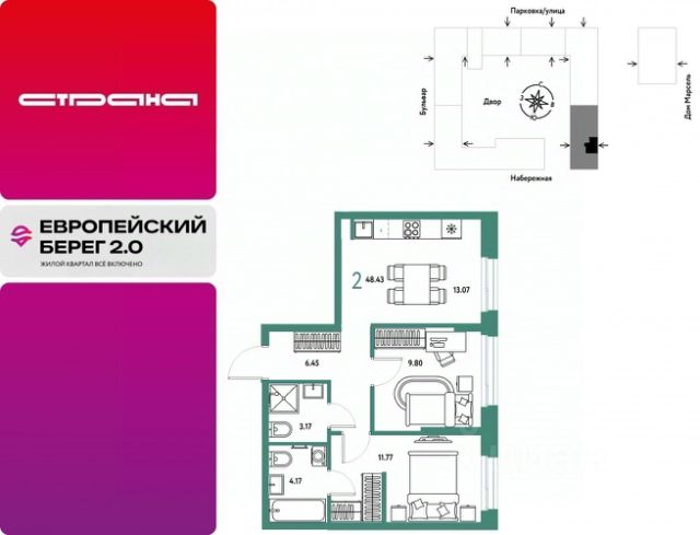 Объявление от застройщика Страна Девелопмент. Покупка квартиры защищена банком. Продается 2комнатная квартира на 5 этаже от застройщика Страна Девелопмент. Площадь квартиры 34,21 кв. м. Стоимость указана без учета акций. Европейский берег 2.0. — это продолжение легендарного жилого комплекса Европейский берег. Он включает все, что нужно для жизни, и даже больше. Этот квартал для тех, кто не готов тратить время на ненужное, жертвовать одним ради другого. Для тех, кто хочет получить все и сразу. Именно поэтому генеральная идея проекта — жилой квартал все включено. Все преимущества включены. Никаких исключений. ПРЕИМУЩЕСТВА Разнообразие планировок: от классических до квартир с мастер-спальней и террасами. Подземный паркинг с кладовыми, охраной и видеонаблюдением 24/7. Ремонт от застройщика: 5 вариантов на выбор. Закрытый двор с площадками и зонами отдыха: мост-акведук, тренажёры, лабиринты, гамаки и шезлонги. ОТДЕЛКА Базовая отделка или готовый ремонт от застройщика. В базовой отделке все черновые работы выполнены, подведены коммуникации, стены оштукатурены под маяк. В ремонт от застройщика входит 5 вариантов отделки, уже включено всё необходимое: от сантехники до кондиционера. СПОСОБЫ ПОКУПКИ Сотрудники "Страны Девелопмент" будут сопровождать вас на каждом этапе сделки, помогут получить одобрение по ипотеке или снизить ежемесячный платеж. - ипотека - материнский капитал - 100% оплата наличными - рассрочка - обмен — это выкуп вашей старой квартиры и зачисление полученных денежных средств в счет стоимости новой квартиры или в качестве первоначального взноса по ипотеке.