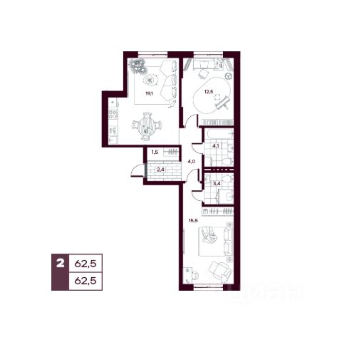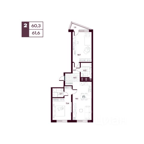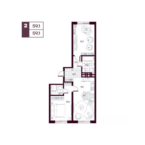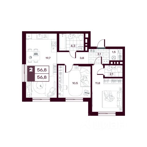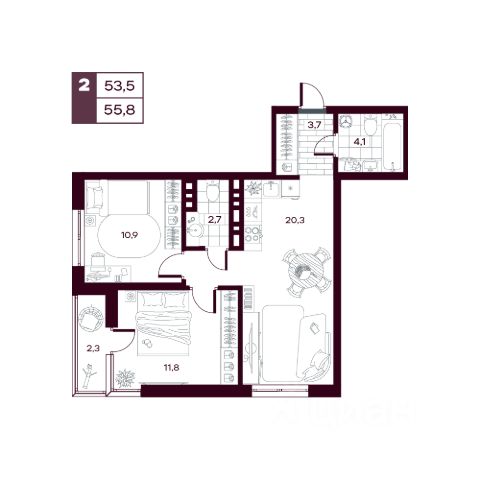 2-комн. квартира с предчистовой отделкой в ЖК "Прео" на 2 этаже. Общая площадь: 63.68 кв.м., жилая: 26.74 кв.м., площадь просторной кухни-столовой: 18.04 кв.м. Комнаты изолированные, все окна выходят на одну сторону. В квартире одна лоджия, один совмещенный и один раздельный санузел. Высота потолков 2.7 м.