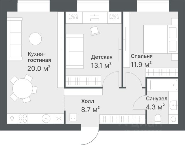Продаётся квартира площадью 55.81 м2 в жилом комплексе "Смородина". Квартира находится на 3 этаже, жилая площадь квартиры 13.75 м2, площадь просторной кухни — 24.55 м2. Среди особенностей планировки — изолированные комнаты с окнами на одну сторону, 1 совмещённый санузел. Срок сдачи — IV кв. 2026 Жилой комплекс "Смородина" — это: - уютный малоэтажный комплекс в районе ММС - дома высотой 4 этажа - квартиры от студий до семейных вариантов с отапливаемыми лоджиями - экологичные материалы в благоустройстве территории Окружение В 5 минутах ходьбы от проекта — озеро Липовое с песчаным пляжем и лесопарковая зона. Инфраструктура В шаговой доступности есть все для комфортной жизни: школы, детские сады, магазины и аптеки. Рядом с проектом — остановка общественного транспорта. Благоустройство Прямо во дворе — собственные грядки для жителей, где можно выращивать зелень и цветы. Для детей оборудованы детские площадки из натуральных материалов. Лобби Вдохновленные современными тенденциями наши парадные разработаны с акцентом на эстетическую привлекательность и практичность. Использование натуральных материалов и ярких цветовых акцентов создает атмосферу уюта и стиля. Планировки Среди многообразия продуманных планировок есть и уютные студии, и просторные семейные варианты. Во всех квартирах предусмотрены отапливаемые лоджии, где можно устроить зону отдыха или рабочий кабинет.