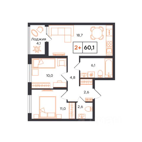 Просторная 2-комн. квартира с функциональной планировкой, сдается в предчистовой отделке в микрорайоне Чемпионский. Чемпионский микрорайон комплексного развития территории для комфортной и активной жизни. Монолитные дома переменной этажности от 12 до 24 этажей где каждая квартира наполнена светом, а из окна открываются завораживающие виды на заливные луга или на набережную реки Тура. Дом разделен на 3 секции, в которых предусмотрено от 2 до 3 грузопассажирских лифта. Окончание строительства - 4 квартал 2025 года. Архитектура Фасады выполнены в мягких, пастельных оттенках, подчеркивающих гармонию с окружающей средой. Для отделки использовали комбинацию гладких и фактурных штукатурок. Отдельного внимания заслуживают летние пространства: просторные балконы и уютные террасы украшают внешний облик зданий, придавая каждой постройке неповторимый характер. Подсветка фасада создает уютную атмосферу во время вечернего променада. Благоустройство Благоустройство выполнено по ландшафтному дизайну. Предусмотрено разноуровневое озеленение территории. Используется посадочный материал из местных питомников, адаптированный под климатические условия. По периметру здания благоустройство выполнено на уровне земли, имеются проезды и стоянки для автомобилей, пешеходные и велосипедные дорожки, зоны для отдыха. Безбарьерный вход в дизайнерские парадные, с теплым тамбуром и мягкими зонами ожидания. В закрытом дворе размещены детские спортивные площадки, скейтпарк, баскетбольная площадка, а также зоны отдыха взрослого населения. Здесь вы ощущаете гармонию с окружающим миром, наслаждаясь красотой природы в пределах города. Инфраструктура В шаговой доступности от жилого комплекса находятся: продуктовые магазины, пункты выдачи интернет-заказов, банкоматы, средняя общеобразовательная школа 38, общественный парк, остановка общественного транспорта.