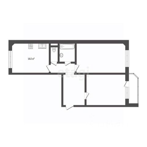 Раздельный санузел, выложенный кафелем, просторная, светлая кухня-гостиная площадью 18 м² создают атмосферу уюта и комфорта.