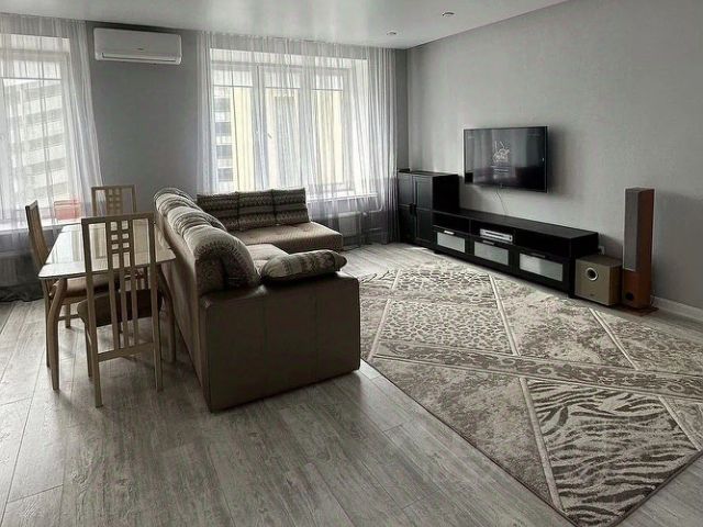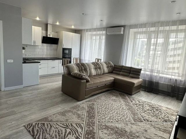 В квартире просторная кухня-гостиная с новым кухонным гарнитуром и техникой, 2 спальни с мебелью, вместительная прихожая с нишей под большой шкаф и раздельный сан.узел. В квартире современный ремонт в светлых тонах: белые обои под покраску, натяжной белый матовый потолок, ламинат 33 класса, межкомнатные двери в цвет пола, установлена надежная железная дверь. Огромное преимущество - большие окна (подоконник на уровне колен),в квартире много света, очень уютно! В подъезде 3 надежных грузопассажирских лифта. Входная группа безбарьерная , т.е. не имеет ступеней и оснащена современными технологиями по пропуску в жильё, установлен видеодомофон. На улице установлено видеонаблюдение, у нас безопасно! Парковочных мест во дворе с избытком, также скоро в продаже закрытый паркинг.