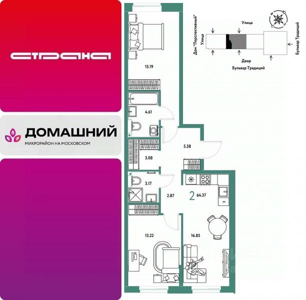 Новая квартира в ЖК "Домашний" напрямую от федеральной группы компаний "Страна Девелопмент". Финансовый партнер — банк "ДОМ.РФ". Продается 2комнатная квартира на 8 этаже от застройщика Страна Девелопмент. Площадь квартиры 56,25 кв. м. Стоимость указана без учета акций. Жилой комплекс "Домашний" это первый цифровой район в Сибири, где жители заходят в парадные по Face ID, автомобили заезжают в паркинг по сканированию номера, а лифт автоматически спускается на первый этаж при открытии домофона. Даже во дворах — USB-розетки и беседки с подогревом. ПРЕИМУЩЕСТВА: -Школа, зеленый сквер и пешеходный бульвар прямо внутри квартала -Закрытые дворы у каждого дома для активного и спокойного отдыха -Охрана, видеонаблюдение 24/7 и доступ к камерам в мобильном приложении -Сквозные парадные с прозрачными входными группами, колясочными и велосипедными -Паркинг с въездом по считыванию номеров, системой контроля выбросов CO2, тележками для покупок и велопарковкой -Торговая галерея на первом этаже дома ОТДЕЛКА Квартиры сдаются с предчистовой отделкой: произведена разводка электричества и отопления, выполнена стяжка пола, стены выровнены "под маяк", установлены розетки, выключатели и радиаторы. ДИЗАЙНЕРСКАЯ ОТДЕЛКА При покупке квартиры в ЖК "Домашний" можно включить стоимость ремонта в ипотеку. Пять вариантов на выбор: Хлопковая нить, Серый шторм, Белый камень, Шалфей, Голубой вереск. СПОСОБЫ ПОКУПКИ: - ипотека - материнский капитал -100% оплата наличными Сотрудники "Страна Девелопмент" будут сопровождать вас на каждом этапе сделки, помогут получить одобрение по ипотеке или снизить ежемесячный платеж.