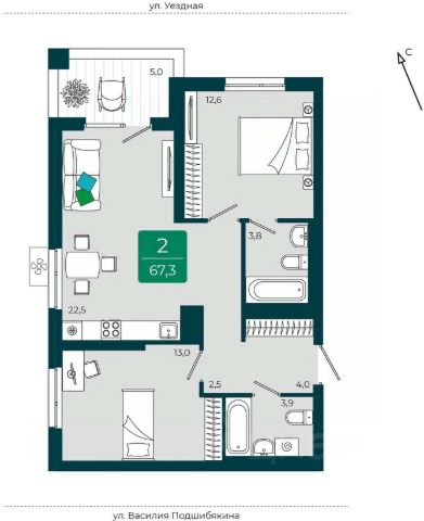 Продается двухкомнатная квартира в ЖК "Уездные кварталы" на 3 этаже. Квартира без отделки, после оформления собственности можно делать ремонт. Общая площадь: 67.3 кв.м., жилая: 25.6 кв.м., площадь просторной кухни-столовой: 22.5 кв.м. Угловая квартира, идеально подойдет любителям тишины и панорамных видов. В квартире одна лоджия, два совмещенных санузла. Высота потолков 2.72 м. Дом монолитный, двухподъездный, переменной этажности, от 9 до 17 этажей. Квартира находится во 2-й секции высотой 9 этажей в корпусе ГП-5.1. На этаже 7 квартир. В подъезде 1 грузовой лифт. Окончание строительства - 4 квартал 2026 года. Оформление сделки по договору долевого участия. "Уездные кварталы" - семейный жилой комплекс комфорт-класса с авторской архитектурой и трехуровневым ландшафтным озеленением. Рядом расположены крупные транспортные развязки, которые позволяют добраться в любую точку города за 15 минут. Жилой комплекс находится в современном районе с развитой инфраструктурой, на первой линии Тюменской Слободы. Вокруг есть всё необходимое в шаговой доступности: новые детские сады и школы, остановки общественного транспорта, магазины, кафе и рестораны, поликлиника, детская школа искусств, парки и спортивный комплекс. На первых этажах квартала расположена собственная коммерческая сеть, а также свой соседский центр. Проект включает 5 домов переменной этажности с более чем 100 планировками - с террасами, французскими балконами и мастер-спальнями. Закрытые дворы оборудованы интерактивными площадками для игр, спортивными зонами и местами тихого отдыха. Вдоль жилого комплекса расположен пешеходный бульвар с сухим фонтаном, а для автомобилей предусмотрен теплый паркинг. Часть квартир можно приобрести с ремонтом, мебелью и техникой от застройщика, а расходы включить в ипотечный платеж. #ZM5Dd9