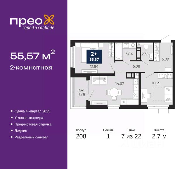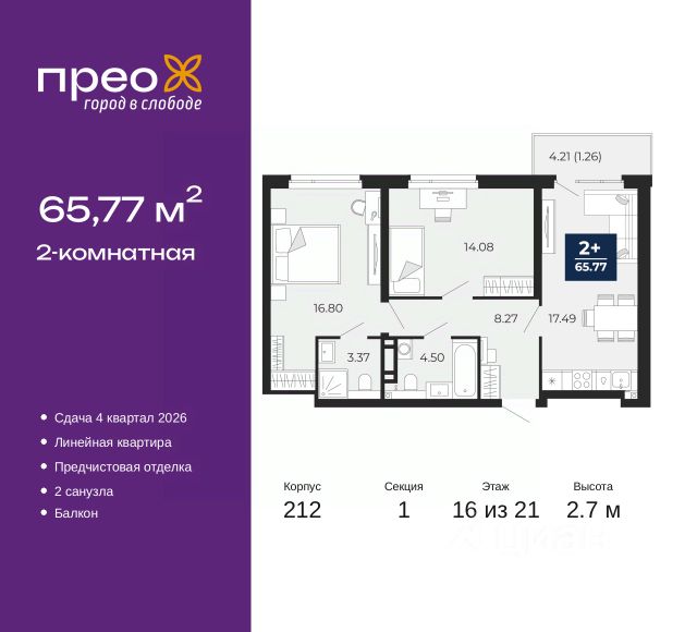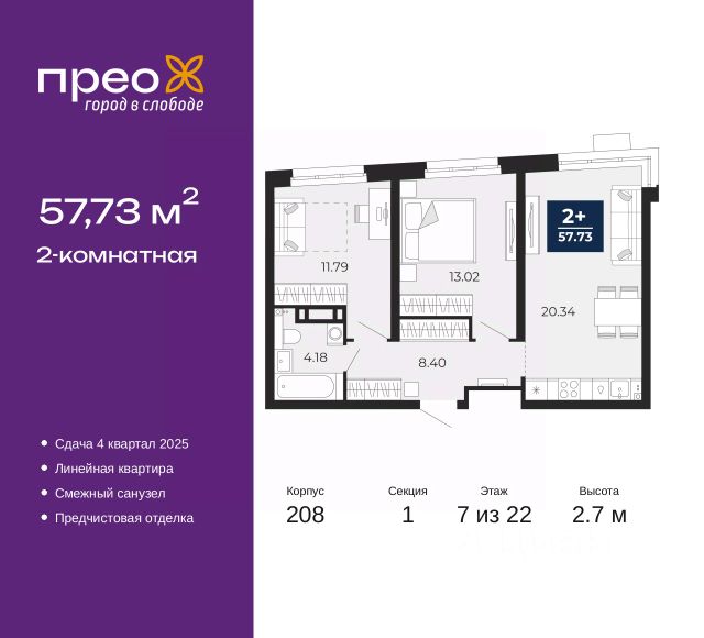 Просторная двухкомнатная квартира с предчистовой отделкой в ЖК "Прео" на 11 этаже. Общая площадь: 58.54 кв.м., жилая: 24.73 кв.м., площадь просторной кухни-столовой: 17.76 кв.м. Угловая квартира, идеально подойдет любителям тишины и панорамных видов. В квартире одна лоджия, один совмещенный санузел. Высота потолков 2.7 м. Дом монолитный, трехподъездный, переменной этажности, от 14 до 23 этажей. Квартира находится в 1-й секции высотой 23 этажа в корпусе 206. На этаже 8 квартир. В подъезде 1 пассажирский и 1 грузовой лифт. Окончание строительства - 4 квартал 2025 года. Оформление сделки по договору долевого участия. Преображенский — один из самых привлекательных районов для жизни! Это полностью самостоятельный жилой район с точки зрения инфраструктуры. Преображенский находится между Московским и Червишевским трактами в квартале улиц Закалужская — Вьюжная — Александра Протозанова. Не нужно ждать, когда появится инфраструктура — переезжайте на всё готовое. Вблизи расположены действующие школа и детский сад. В этом году откроется еще один сад, а в следующем году — школа. По соседству с Преображенским запланировано строительство городского парка "Комарово" площадью 38 гектар. За 10 минут можно доехать на автомобиле до крупных ТРЦ: "Лента", "Кристалл", "Леруа Мерлен", "Метро" и "Ашан". С 2018 года в районе открыт Соседский центр — пространство, созданное для формирования добрососедской среды, совместного досуга, общения и реализации соседских инициатив. Здесь проходят встречи соседей, а также сами жители района организовывают мероприятия. Организатором такого события может стать любой желающий. В квартирах выполнена качественная предчистовая отделка. Гладкие стены с финишным выравниванием по маякам. Ровный потолок для установки натяжного потолка. Установлены пятикамерные окна с двойным стеклопакетом (3 стекла). Дизайнерские холлы с видеонаблюдением, безбарьерным и прозрачным входом всегда светло и спокойно. На первом этаже есть просторные колясочные, где все жители могут оставлять свои коляски и велосипеды. В Преображенском есть всё, что нужно для активного отдыха и занятий спортом. Мы сделали большое футбольное поле с безопасным покрытием. Также установили хоккейный корт, который оборудован по всем необходимым стандартам. Во дворах можно делать упражнения на специальных площадках с турниками. Весь район мы обустроили велодорожками, которые связаны в единый маршрут. У нас есть сухие фонтаны, бьющие из земли, деревья, веревки, сетки, скалодром, газон, песок и резинка — осталось просто дать своему ребенку право на свободную игру. По-настоящему хорошие дворы — это те, которые дети предпочитают соцсетям и телевизору. Аккредитация в банках: ПАО "Газпромбанк", ПАО Банк "ВТБ", ПАО "Банк Уралсиб", "Сбербанк России", ОАО "Альфа-Банк" и других. #26veC3
