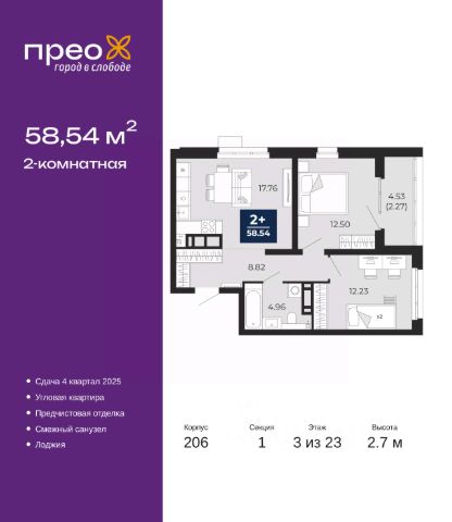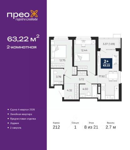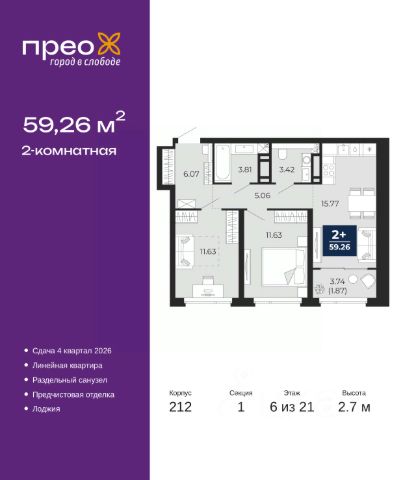 Продается 2-комн. квартира с предчистовой отделкой в ЖК "Прео" на 10 этаже. Общая площадь: 56.08 кв.м., жилая: 22.33 кв.м., площадь просторной кухни-столовой: 16.04 кв.м. Комнаты изолированные, все окна выходят на одну сторону. В квартире один раздельный санузел. Высота потолков 2.7 м. Дом монолитный, черырехподъездный, переменной этажности, от 14 до 21 этажей. Квартира находится во 2-й секции высотой 21 этаж в корпусе 211. На этаже 10 квартир. В подъезде 1 пассажирский и 1 грузовой лифт. Окончание строительства - 4 квартал 2026 года. Оформление сделки по договору долевого участия. Преображенский — один из самых привлекательных районов для жизни! Это полностью самостоятельный жилой район с точки зрения инфраструктуры. Преображенский находится между Московским и Червишевским трактами в квартале улиц Закалужская — Вьюжная — Александра Протозанова. Не нужно ждать, когда появится инфраструктура — переезжайте на всё готовое. Вблизи расположены действующие школа и детский сад. В этом году откроется еще один сад, а в следующем году — школа. По соседству с Преображенским запланировано строительство городского парка "Комарово" площадью 38 гектар. За 10 минут можно доехать на автомобиле до крупных ТРЦ: "Лента", "Кристалл", "Леруа Мерлен", "Метро" и "Ашан". С 2018 года в районе открыт Соседский центр — пространство, созданное для формирования добрососедской среды, совместного досуга, общения и реализации соседских инициатив. Здесь проходят встречи соседей, а также сами жители района организовывают мероприятия. Организатором такого события может стать любой желающий. В квартирах выполнена качественная предчистовая отделка. Гладкие стены с финишным выравниванием по маякам. Ровный потолок для установки натяжного потолка. Установлены пятикамерные окна с двойным стеклопакетом (3 стекла). Дизайнерские холлы с видеонаблюдением, безбарьерным и прозрачным входом всегда светло и спокойно. На первом этаже есть просторные колясочные, где все жители могут оставлять свои коляски и велосипеды. В Преображенском есть всё, что нужно для активного отдыха и занятий спортом. Мы сделали большое футбольное поле с безопасным покрытием. Также установили хоккейный корт, который оборудован по всем необходимым стандартам. Во дворах можно делать упражнения на специальных площадках с турниками. Весь район мы обустроили велодорожками, которые связаны в единый маршрут. У нас есть сухие фонтаны, бьющие из земли, деревья, веревки, сетки, скалодром, газон, песок и резинка — осталось просто дать своему ребенку право на свободную игру. По-настоящему хорошие дворы — это те, которые дети предпочитают соцсетям и телевизору. Аккредитация в банках: ПАО "Банк Уралсиб", ПАО "Газпромбанк", "Сбербанк России", ПАО Банк "ВТБ", ОАО "Альфа-Банк" и других. #z50AD5