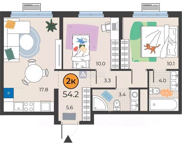 Квартира 2+ площадью 54.1м2 с ремонтом по-дизайн проекту и мебелью полностью готова к комфортному проживанию, Кухня-гостиная 17,1 кв.м, две стильных спальни, большая застекленная лоджия, вместительная гардеробная, все это вы увидите если захотите посмотреть в живую. Ремонт делали исключительно из качественных и дорогих материалов, мебель и техника так же высокого качества.