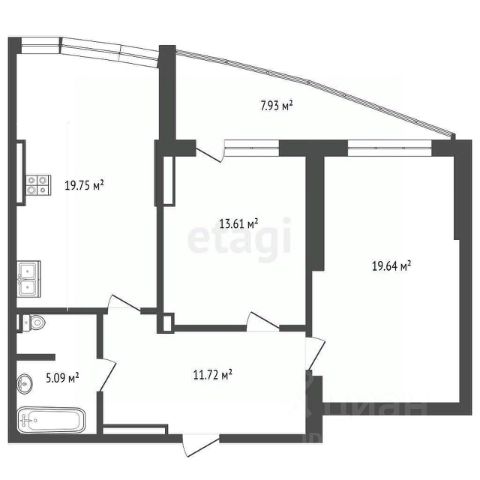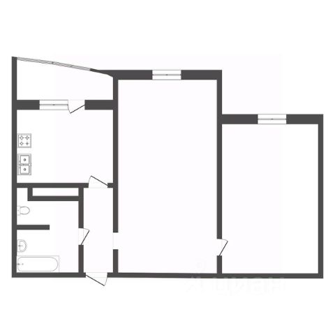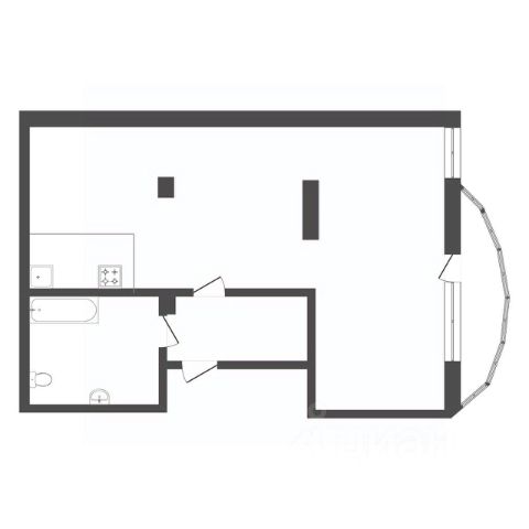 На стенах обои, а потолки выровнены, санузел раздельный, выложен кафелем,