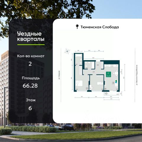 Продается двухкомнатная квартира в ЖК "Уездные кварталы" на 9 этаже. Квартира без отделки, после выдачи ключей можно делать ремонт. Общая площадь: 68.34 кв.м., жилая: 24.74 кв.м., площадь просторной кухни-столовой: 20.05 кв.м. Комнаты изолированные, все окна выходят на одну сторону. В квартире одна лоджия, один совмещенный и один раздельный санузел. Высота потолков 2.7 м. Дом монолитный, многоподъездный, переменной этажности, от 7 до 17 этажей. Квартира находится в 1-й секции высотой 17 этажей в корпусе ГП-3. На этаже 7 квартир. В подъезде 1 пассажирский и 1 грузовой лифт. Окончание строительства - 1 квартал 2026 года. Оформление сделки по договору долевого участия. "Уездные кварталы" - семейный жилой комплекс комфорт-класса с авторской архитектурой и трехуровневым ландшафтным озеленением. Рядом расположены крупные транспортные развязки, которые позволяют добраться в любую точку города за 15 минут. Жилой комплекс находится в современном районе с развитой инфраструктурой, на первой линии Тюменской Слободы. Вокруг есть всё необходимое в шаговой доступности: новые детские сады и школы, остановки общественного транспорта, магазины, кафе и рестораны, поликлиника, детская школа искусств, парки и спортивный комплекс. На первых этажах квартала расположена собственная коммерческая сеть, а также свой соседский центр. Проект включает 5 домов переменной этажности с более чем 100 планировками - с террасами, французскими балконами и мастер-спальнями. Закрытые дворы оборудованы интерактивными площадками для игр, спортивными зонами и местами тихого отдыха. Вдоль жилого комплекса расположен пешеходный бульвар с сухим фонтаном, а для автомобилей предусмотрен теплый паркинг. Часть квартир можно приобрести с ремонтом, мебелью и техникой от застройщика, а расходы включить в ипотечный платеж. #26sc3d