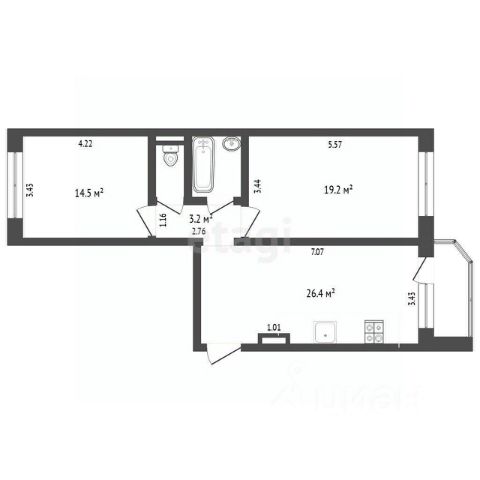 Квартира 2+,много места для жизни, у каждого своя комната, утеплный балкон, где вы можете спокойно можете сделать кабинет для работы
