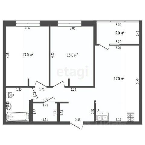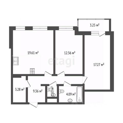 2-комн. квартира с предчистовой отделкой в ЖК "Республики 205" на 3 этаже. Общая площадь: 69.47 кв.м., жилая: 23.1 кв.м., площадь просторной кухни-гостиной: 20.5 кв.м. Комнаты изолированные, все окна выходят на одну сторону. В квартире две лоджии, два совмещенных санузла. Высота потолков 2.7 м.