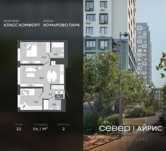 Продаётся квартира площадью 48.1 м2 в жилом комплексе "Айрис". Квартира находится на 3 этаже, жилая площадь квартиры 20.6 м2, площадь просторной кухни — 16.4 м2. Среди особенностей планировки — изолированные комнаты с окнами на одну сторону, 1 совмещённый санузел. Срок сдачи — III кв. 2027 Жилой комплекс "Айрис" — это: - фиджитал-квартал в Тюмени - дома высотой от 7 до 25 этажей - квартиры с системой "Умный дом" - цифровые технологии как элемент благоустройства Окружение В нескольких минутах ходьбы от дома — парк "Комарово" с волейбольной площадкой, открытым кинотеатром, зонами для барбекю и катком. Неподалеку от Airis находится центр иппотерапии, где можно покататься на лошадях и взять уроки верховой езды. На территории Airis появится собственный парк с прогулочными аллеями. Инфраструктура В 5-10 минутах от квартала открыты 2 детских сада и гимназия. На шопинг можно отправиться в торговые комплексы "Колумб" и "Кристалл" — они находятся недалеко от дома. Благоустройство Уютный двор — приватное пространство для жителей. В беседках можно будет почитать книгу в тишине, а в тени деревьев устроиться на пикник. На крыше многоуровневого паркинга будет лаунж-зона с кинотеатром, баскетбольная площадка и воркаут-пространство, где можно позаниматься с виртуальным тренером — достаточно отсканировать код. Лобби Интерьеры лобби выполнены в пастельных тонах с элементами фиджитал-решений. Для отдыха и ожидания гостей создана лаунж-зона. Также есть гостевые санузлы. Колясочные Возвращайтесь налегке после прогулки с малышом — оставить коляску можно в специальном помещении на первом этаже. Кладовые Для сезонных и габаритных вещей предусмотрены отдельные кладовые на цокольном этаже. В каждом помещении уже проведено электричество и выполнена стяжка пола. Паркинг На территории — два многоуровневых наземных паркинга. Один из них примыкает к домам — из него можно напрямую пройти в парадные. Планировки Планировки квартала — от компактной студии до сити-хауса с собственным палисадником — соответствуют любым жизненным сценариям. Можно выбрать квартиры с террасами и готовыми дизайнерскими интерьерами.