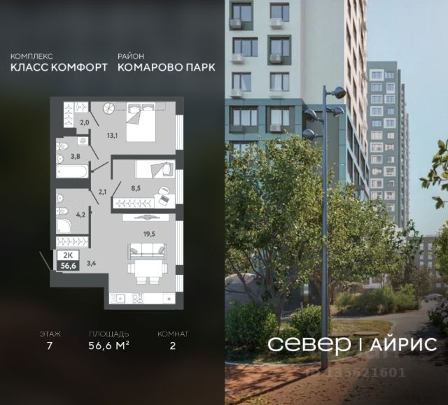 Продаётся квартира площадью 44.9 м2 в жилом комплексе "Айрис". Квартира находится на 16 этаже, жилая площадь квартиры 17.7 м2, площадь просторной кухни — 14.8 м2. Среди особенностей планировки — изолированные комнаты с окнами на одну сторону, 1 совмещённый санузел. Срок сдачи — III кв. 2027 "Айрис" — Смарт-квартал для активной и комфортной жизни "Айрис" расположен в новом экологически чистом районе Комарово Парк — локации без промышленного прошлого,в окружении трёх зелёных парков, до которых можно дойти за 10 минут. Здесь свежий воздух, природа и тишина сочетаются с городским комфортом. Рядом вся ключевая инфраструктура: ТРЦ "Колумб" и "Кристалл", Гимназия 4, Академия спорта, детские сады 60 и 95. Смарт-архитектура обеспечивает хорошие виды и естественное освещение. Разновысотная застройка формирует ощущение открытого пространства, а панорамные окна наполняют квартиры светом. Дворы без машин — безопасные игровые и спортивные зоны, зелёные пространства, места для отдыха и спорта. Большой выбор планировок — от студий до трёхкомнатных квартир, а также редкие форматы: террасы, зимние сады и сити-хаусы. Дополнительные удобства — кладовые на этажах, лаундж-парадные, два наземных паркинга. Продуманная транспортная доступность Благодаря продуманной транспортной доступности "Айрис" одинаково удобен и для автомобилистов, и для тех, кто пользуется общественным транспортом. Район остаётся тихим, при этом сохраняется связь с основными направлениями города: • 2025 минут до центра Тюмени • 67 минут до объездной дороги • 5 минут до Московского тракта Смарт-пространство для жизни без компромиссов "Айрис" предлагает продуманные пространства, которые поддерживают комфортный и активный образ жизни. На крышах паркингов размещены лайфстайл-зоны: площадки для тренировок, кинотеатр под открытым небом, зелёные террасы для йоги и отдыха — всё, что нужно для активной городской жизни рядом с домом. Максимум света и воздуха в каждой квартире Пространственные решения усиливают ощущение простора: • панорамные окна высотой 1,652,4 м; • витражные балконы и лоджии, расширяющие визуальные границы; • потолки от 2,72 м на типовых этажах до 4,62 м на первом. Многофункциональные крыши паркингов: новый уровень городской инфраструктуры Жители "Айрис" могут заниматься спортом, отдыхать и встречаться на свежем воздухе. — прямо на крышах паркингов. Здесь расположены: • воркаут-зона с тренажёрами и цифровыми программами тренировок — поддерживать форму можно рядом с домом; • кинотеатр под открытым небом, который летом становится центром вечерней жизни квартала; • зелёные террасы — тихие места для отдыха, чтения и встреч; • йога-терраса, где удобнее всего заниматься на рассвете и закате.